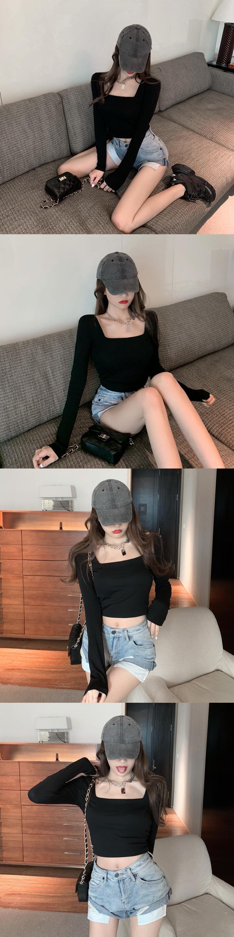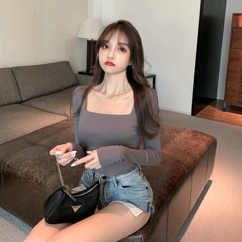 レディースゆったりシャツ スプリングスタイルスリムブラウス ショートTシャツ ロング 春物 スクウェア 長袖 Marchs64468940787