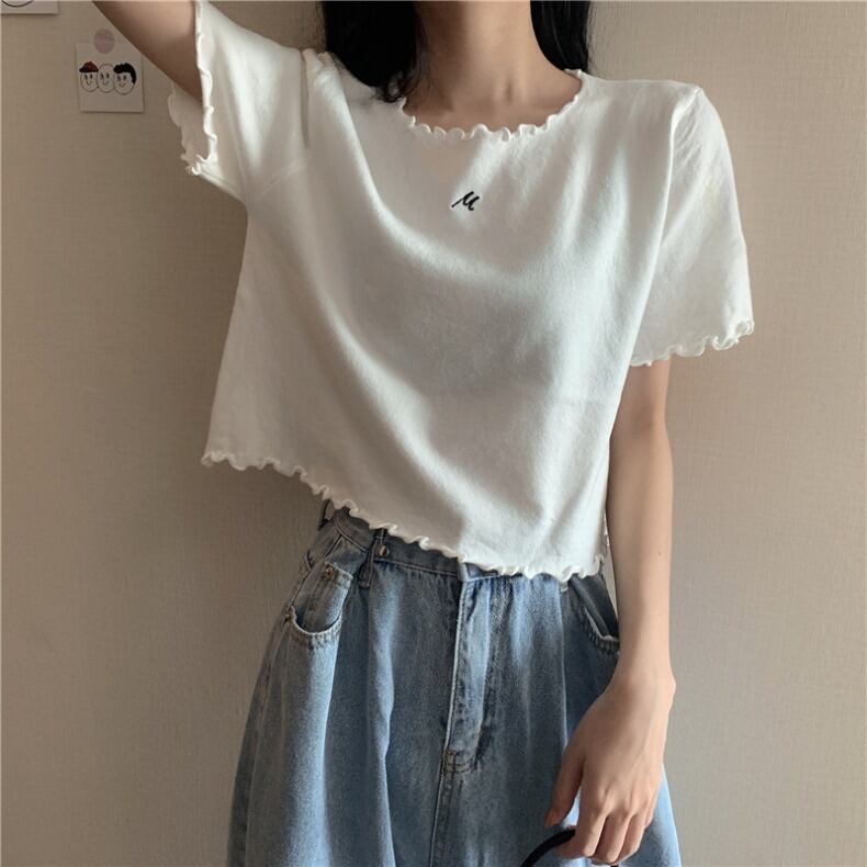 ニットTシャツ夏服薄手クロップドトップス ハイウェストウェストパンツ 夏物 シルク ウエスト Marchs70062563349