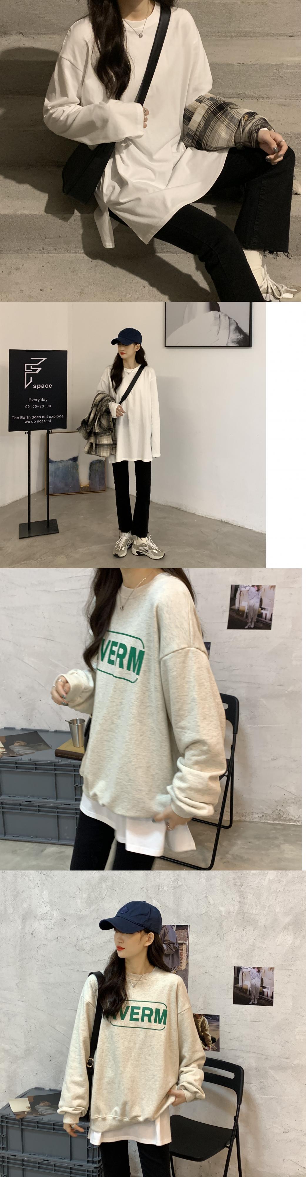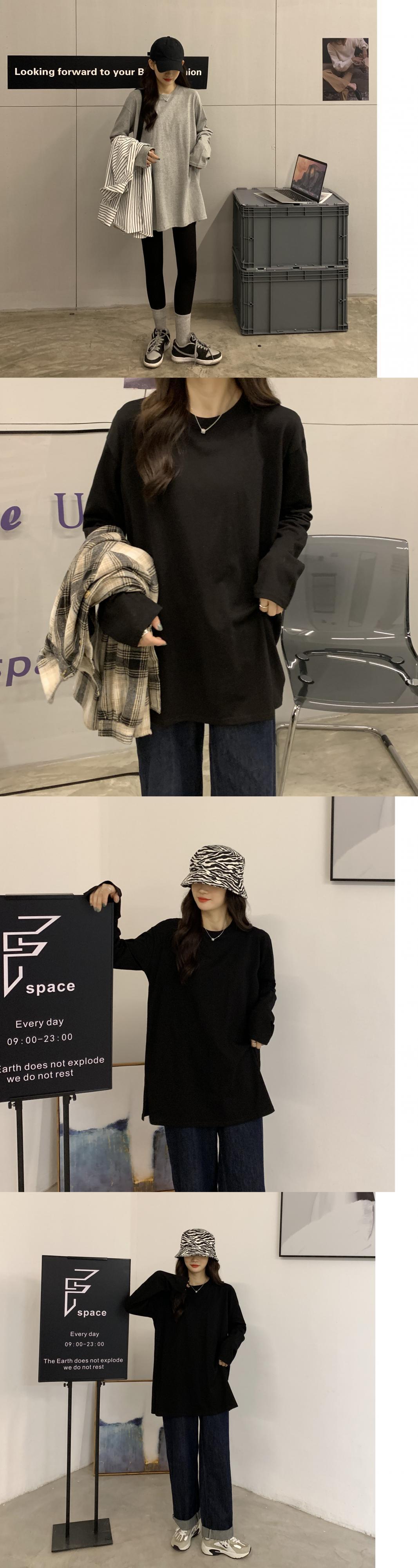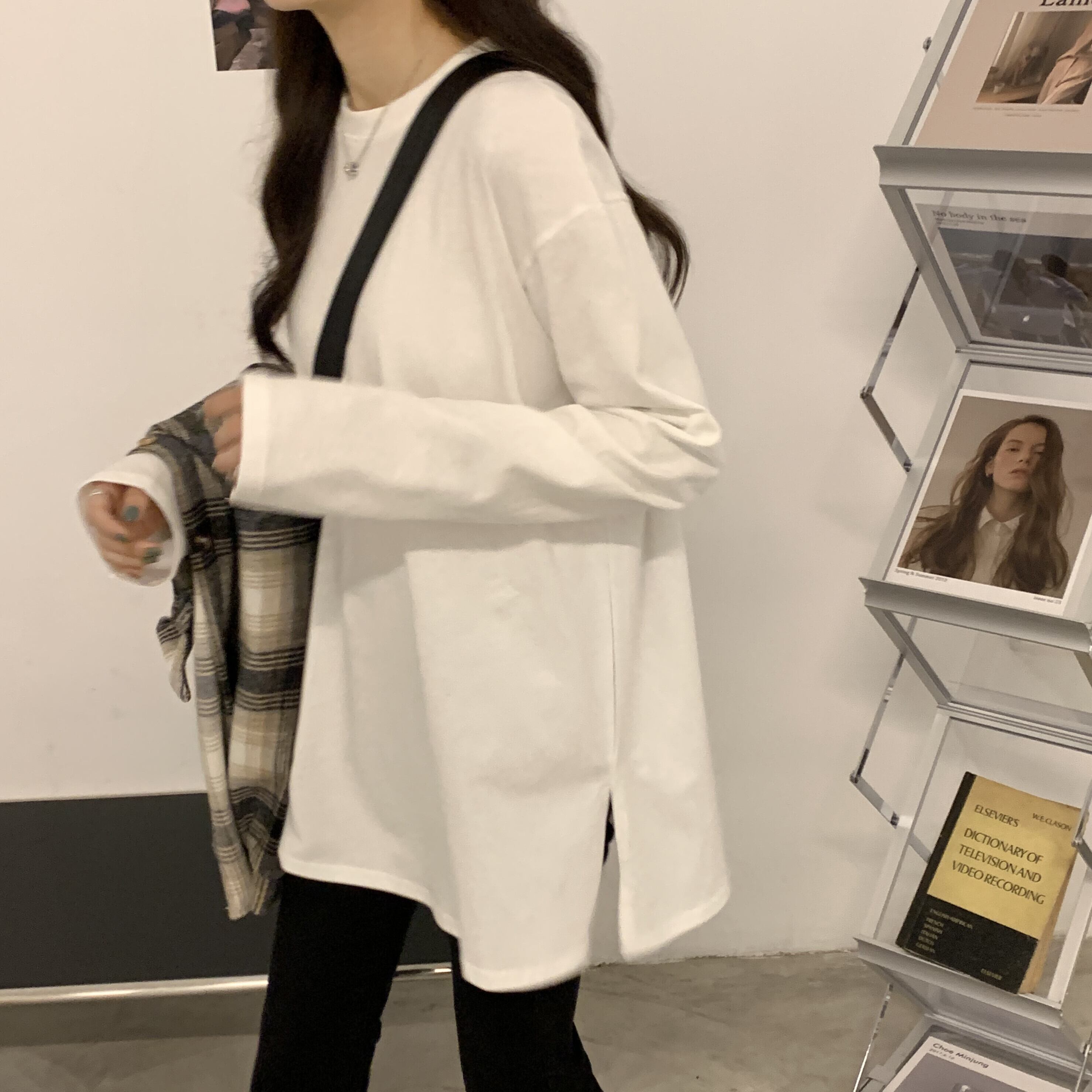 厚みゆったりシャツ ロングスプリングスタイルルーズ韓国ファッションホワイトトップス Tシャツ 春物 長袖 Marchs74279986457