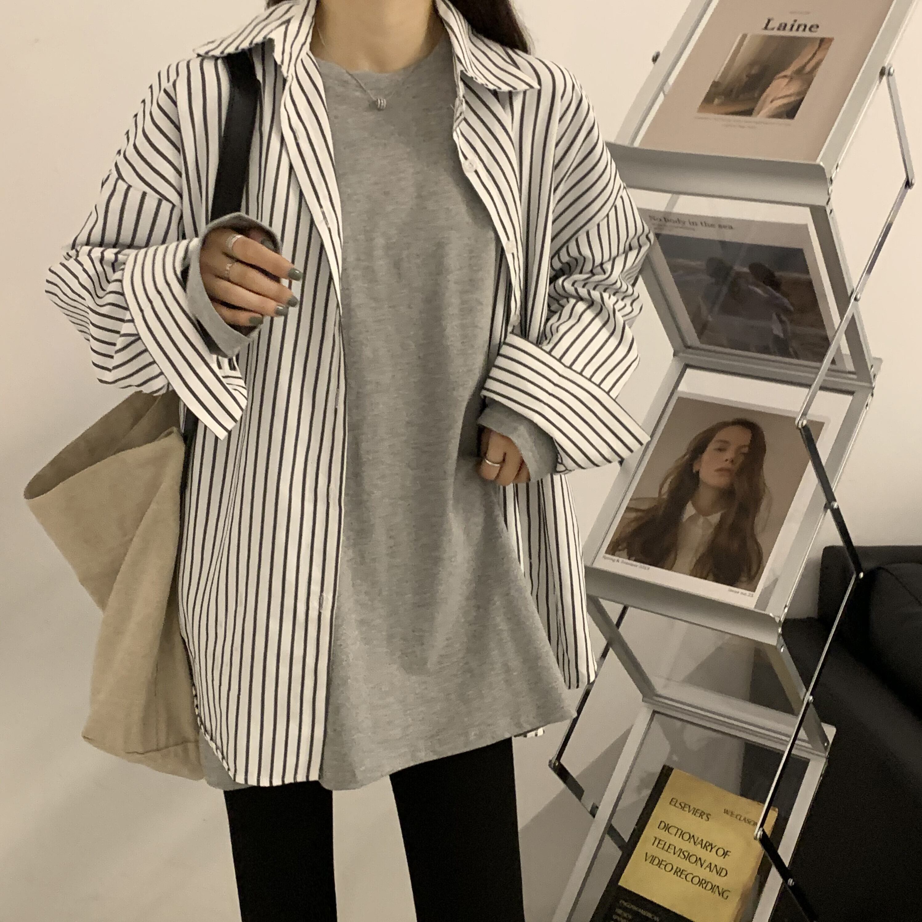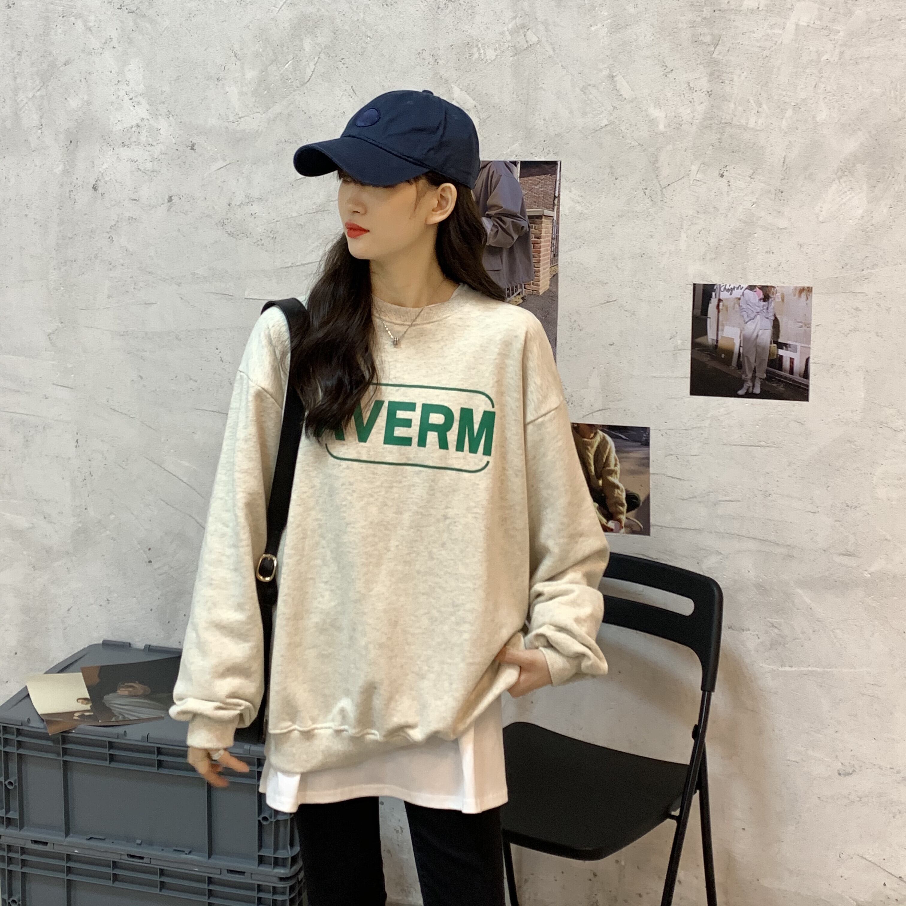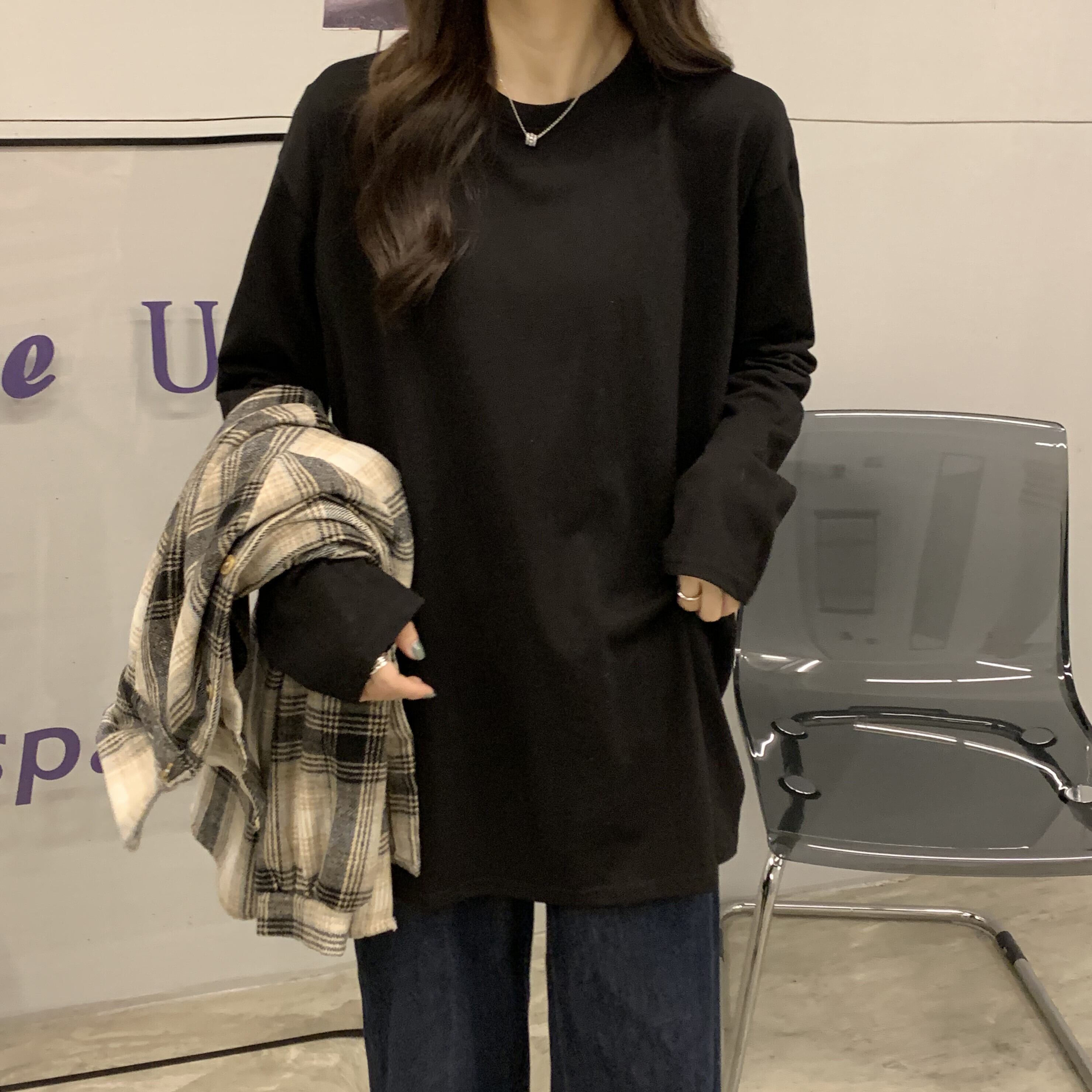 厚みゆったりシャツ ロングスプリングスタイルルーズ韓国ファッションホワイトトップス Tシャツ 春物 長袖 Marchs74279986457