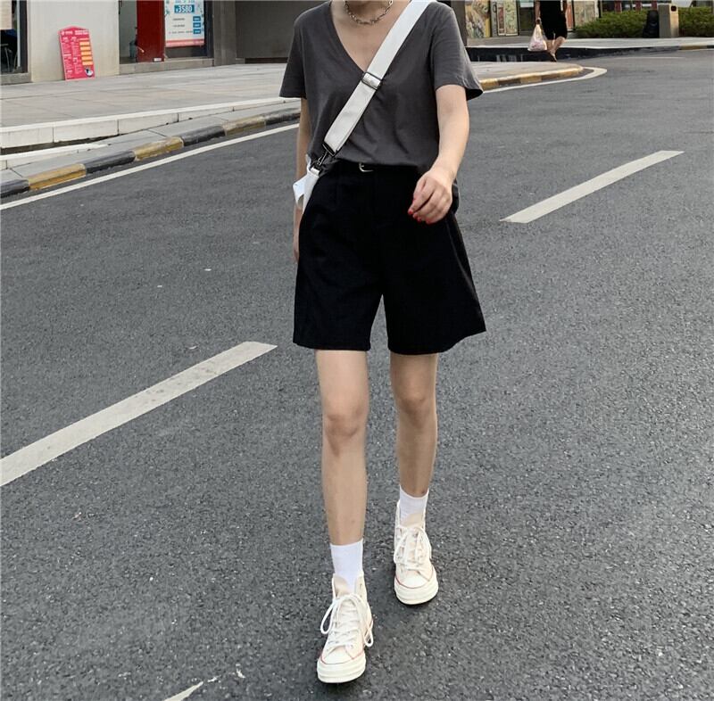 ハイウェストウェストスリムルーズパンツ カジュアルAラインショーツ レディース夏服薄手トレンド 夏物 ウエスト Marchs73517222494