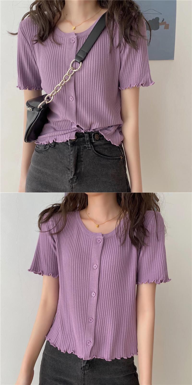 ショートニットカーディガン夏服韓国ファッションラウンドネックトップス Tシャツ 夏物 Oネック シルク スタイル Marchs9426176694