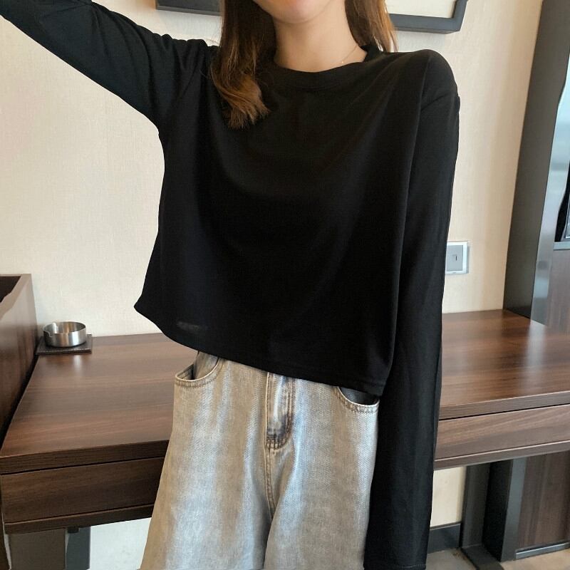 Tシャツシャツ レディーストレンドスプリングホワイトゆったり韓国ファッションルーズハイウェストウェストショートトップス ロング 春物 スタイル 長袖 ウエスト Marchs69196079605
