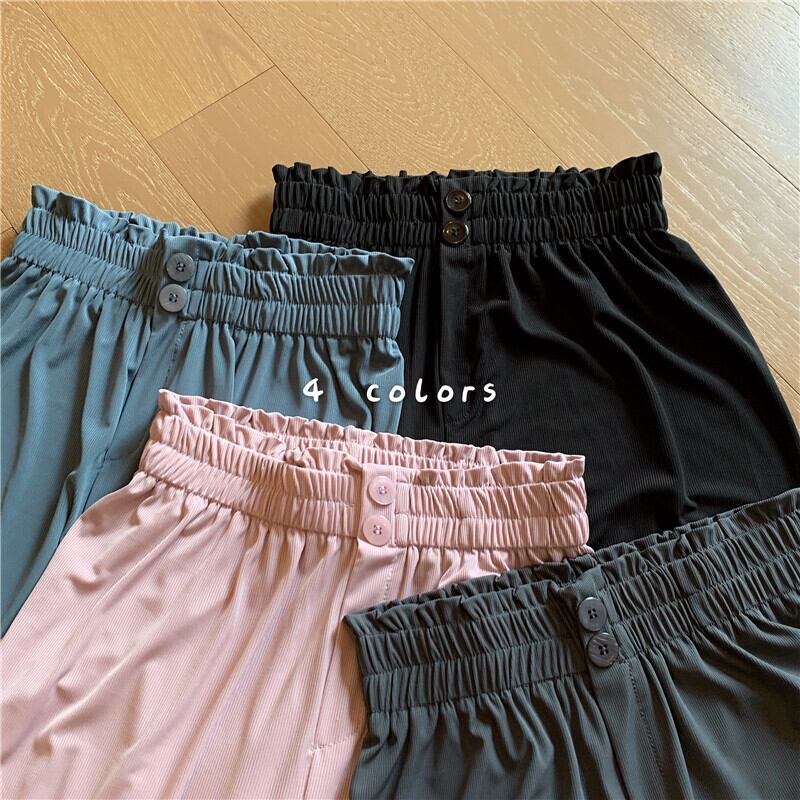 夏服パンツ レディースハイウェストウェストルーズストレッチ エラスティック 伸縮 夏物 シルク ウエスト Marchs85682103696