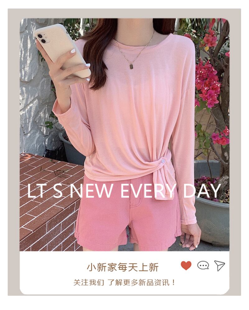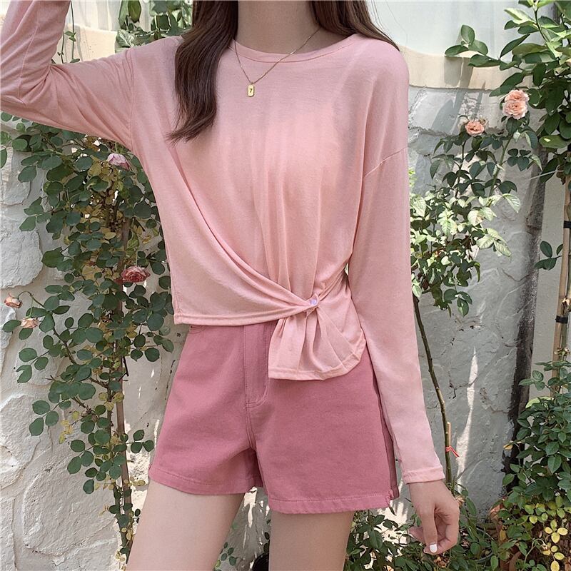 ブラウス レディース薄手ダークボタンTシャツ ロング ピンク 夏物 長袖 Marchs7070770767