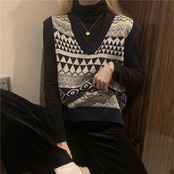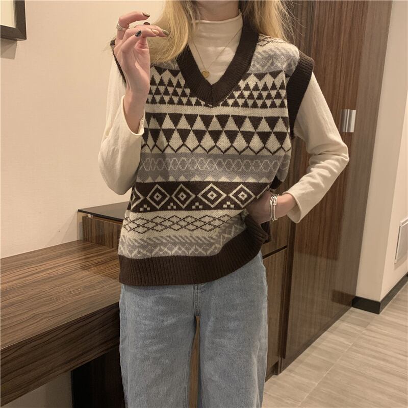 ニットレディーススプリングスタンダードルーズVネックセーター レトロ 春物 ウエスト Marchs34203175750