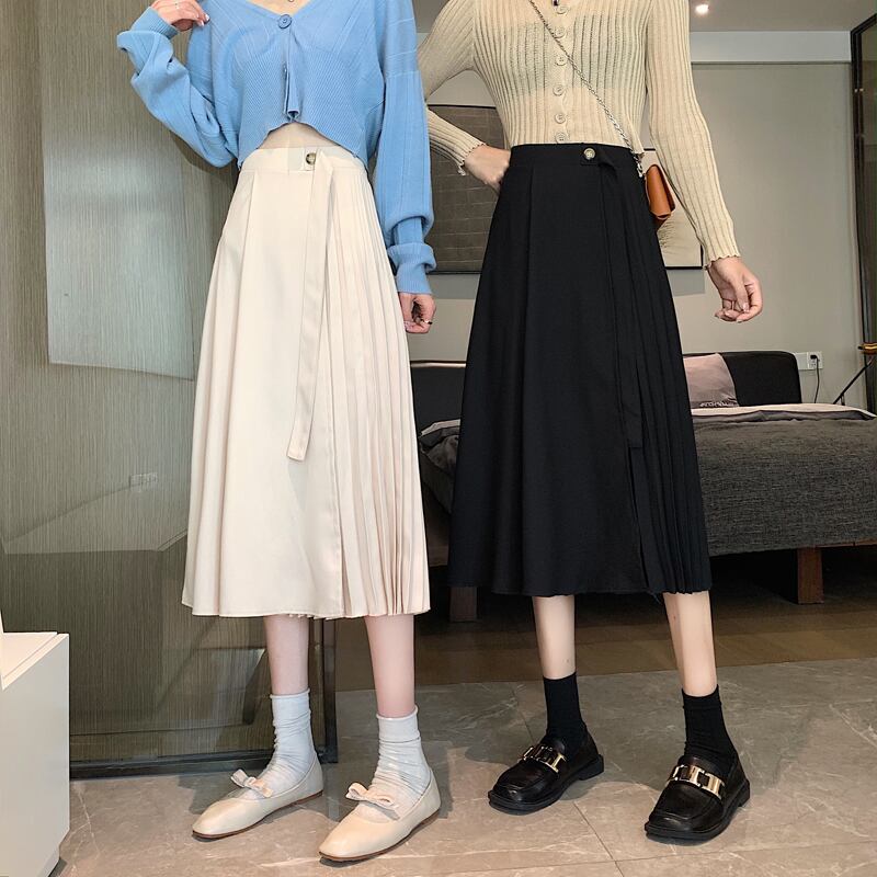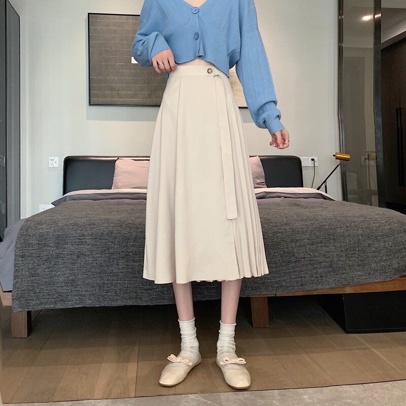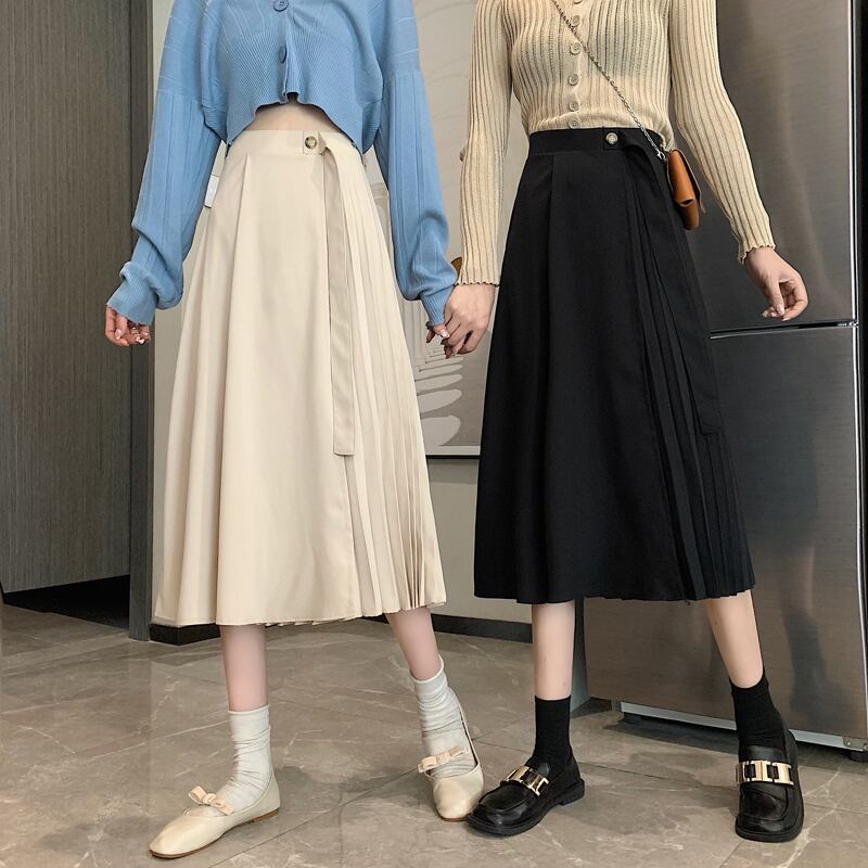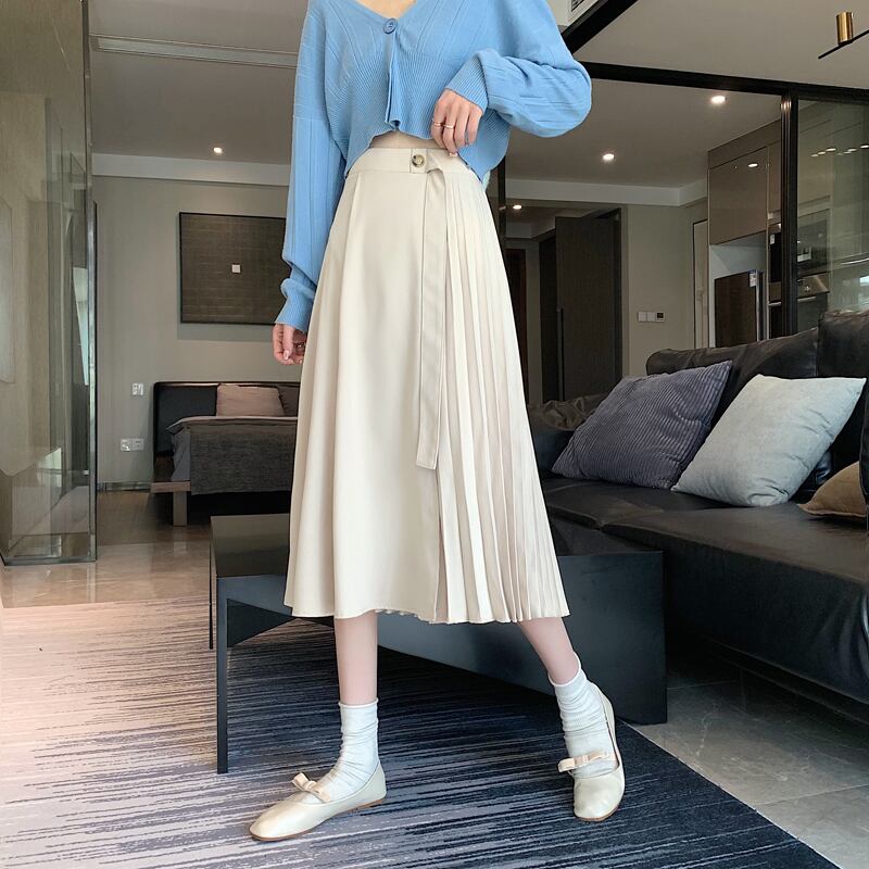 プリーツスカート スプリングハイウェストAライン薄手ロング 春物 ウエスト ミドル丈 Marchs14226336065