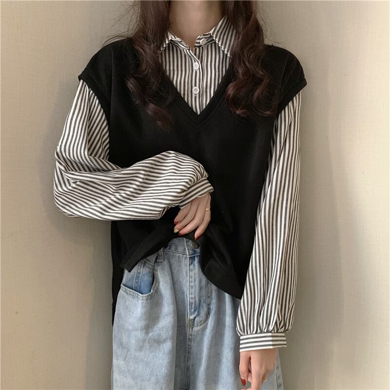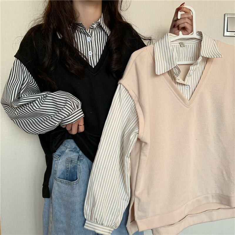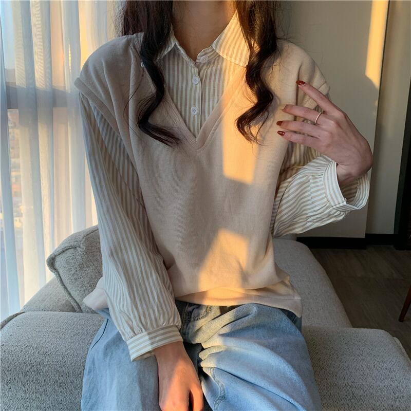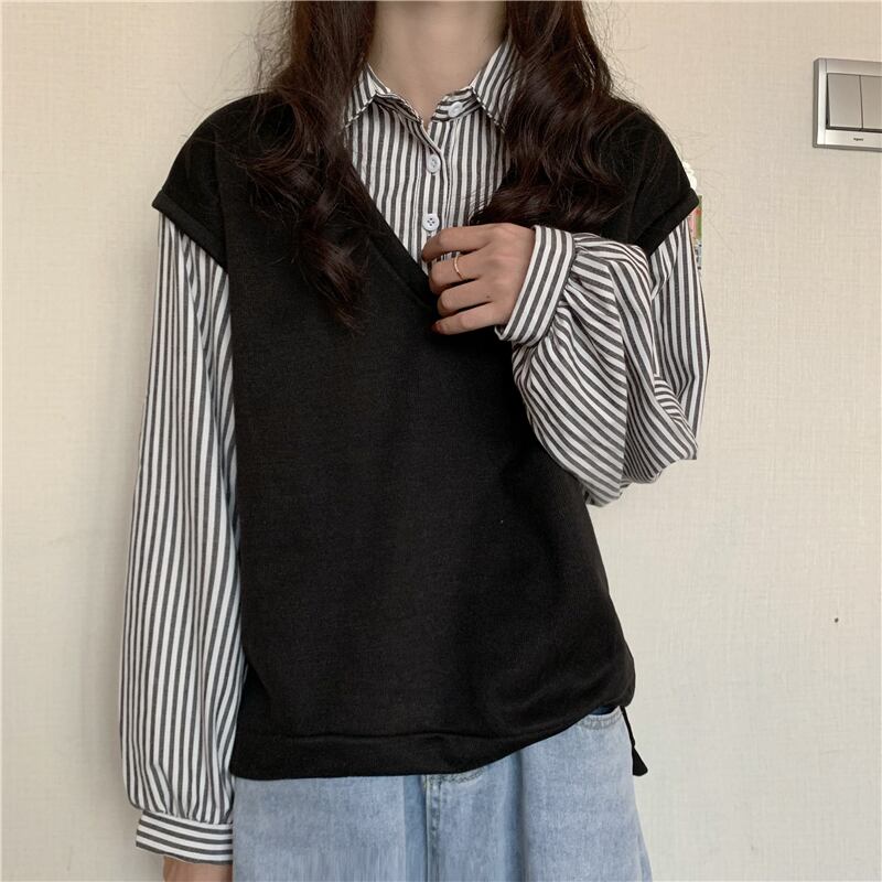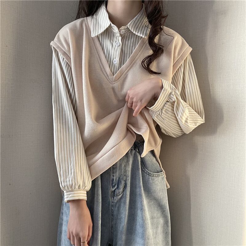 スプリングスタイルストライプシャツレディーストップス 春物 ステッチ Marchs51357786049