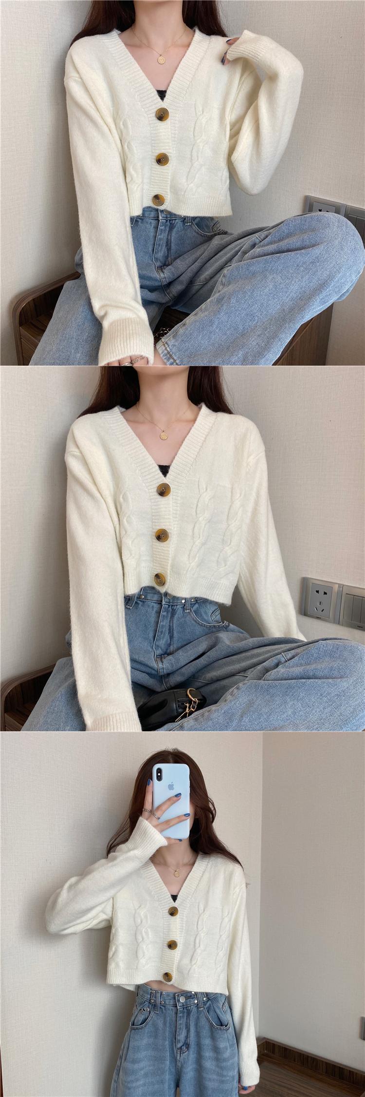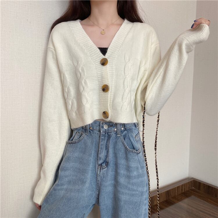 ショートセーター レディースルーズVネックカーディガンジャケット ニット Marchs6787038774