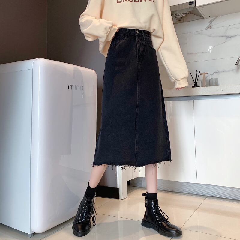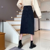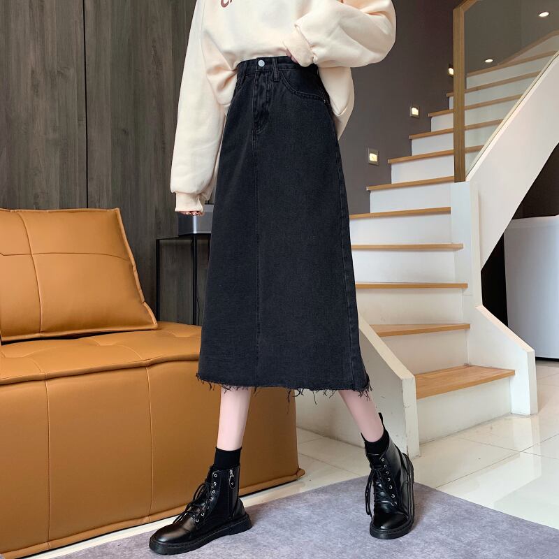 スプリング韓国ファッションハイウェストウェストスカート ブラックAラインレディース 春物 スタイル ウエスト ミドル丈 Marchs47218020469