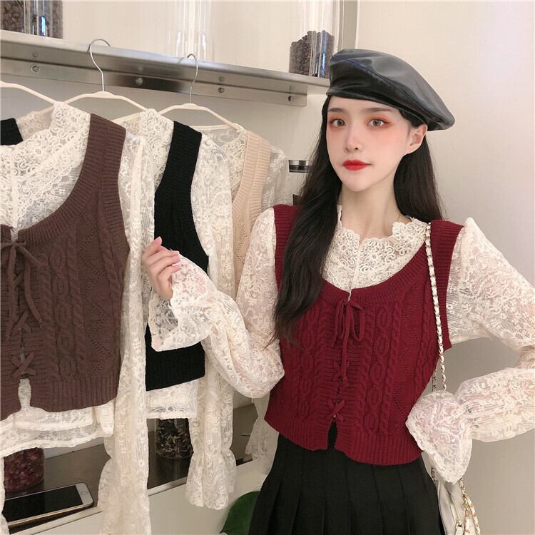 色:白いベストワンピース,ブラックベストワンピース,赤いベストシングル,ブラウンベストワンピース,アプリコットレースシャツ