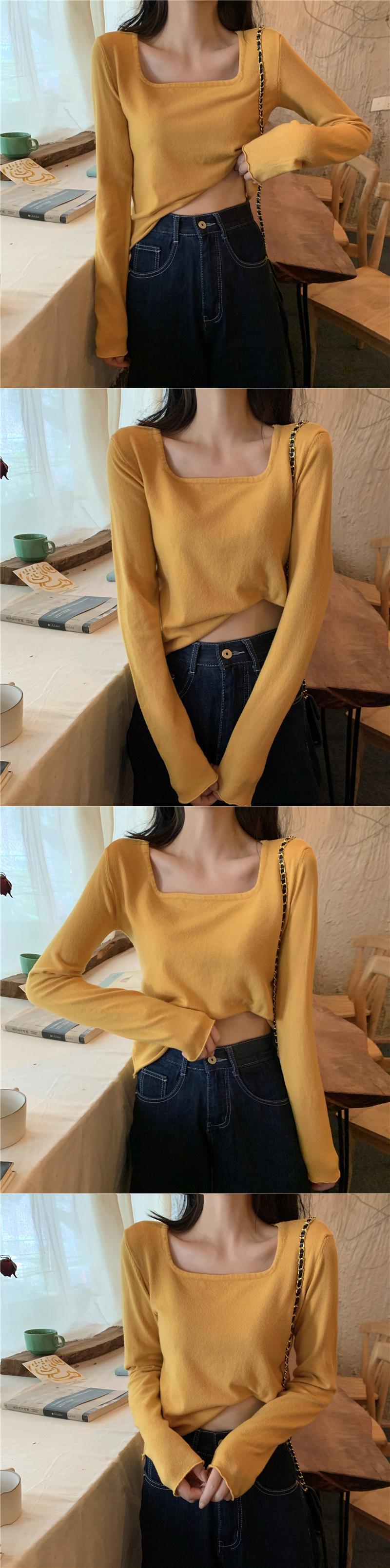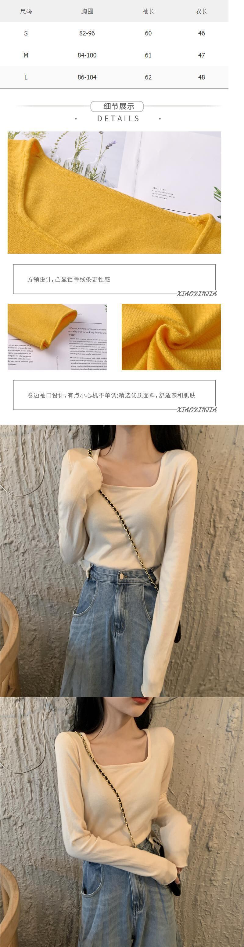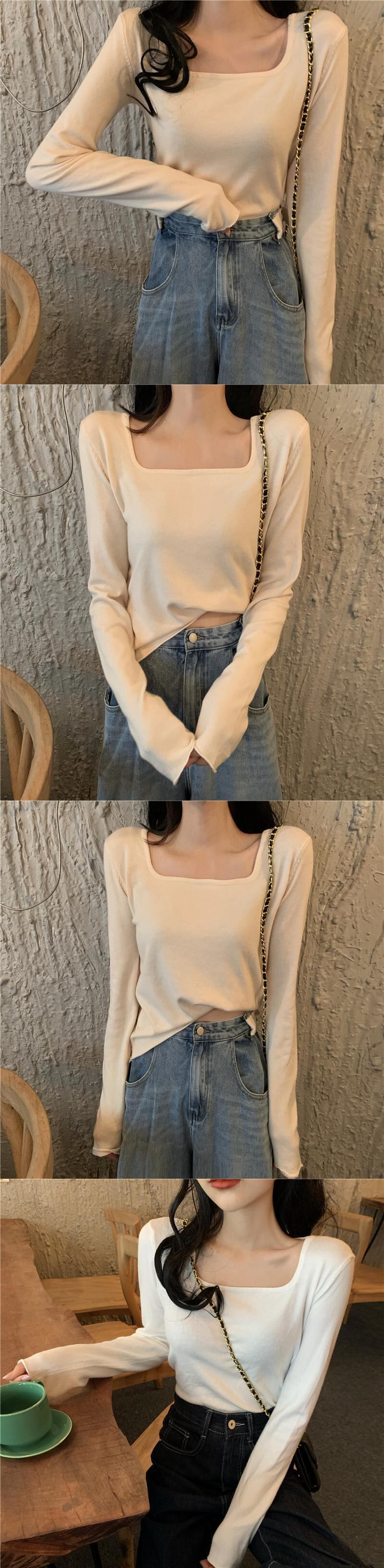 スタイルスリムソリッド カラーニットTシャツシャツ ゆったり夏服薄手トップス ロング 夏物 ソリッドカラー スクウェア 長袖 Marchs76690057612