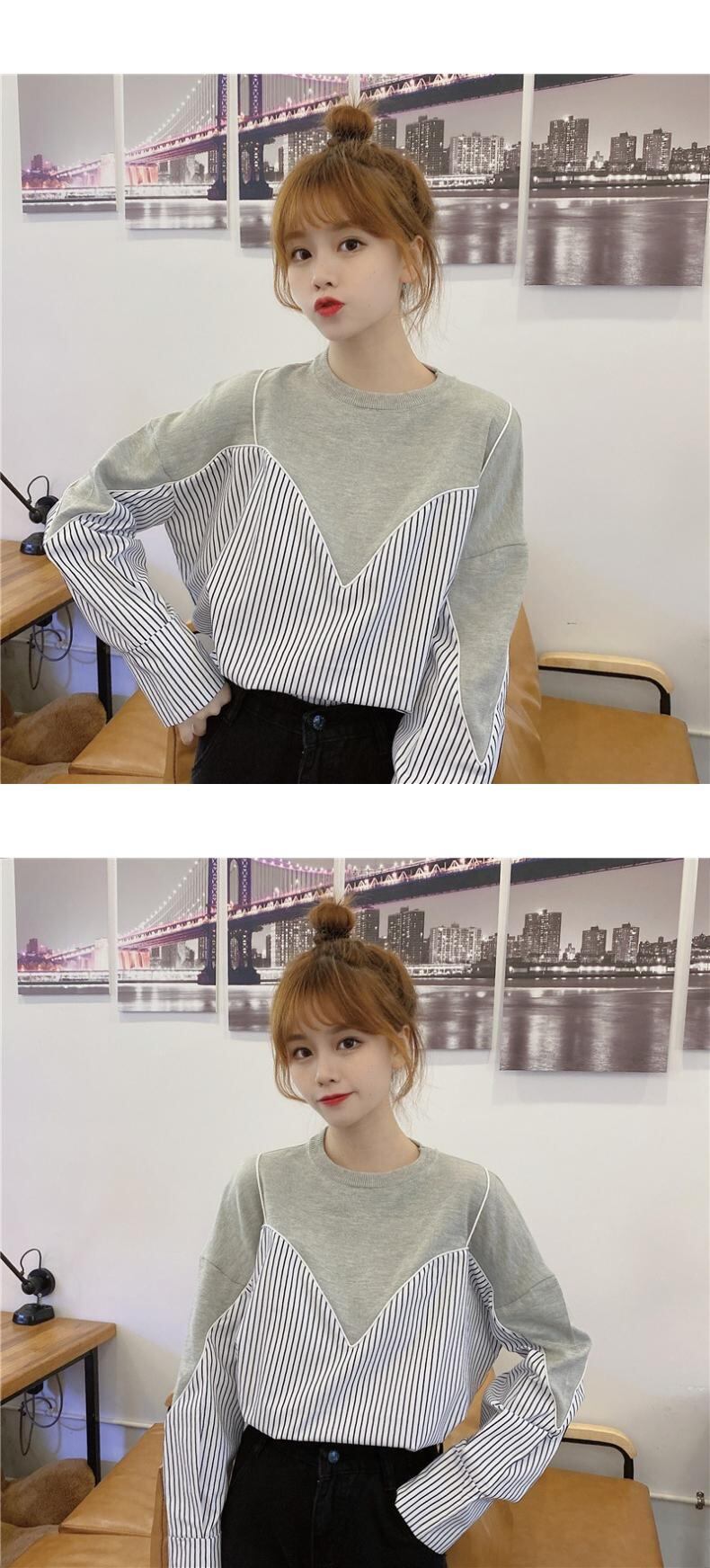 ストライプスプリングトップス レディーストレンドスタンダードセーター ルーズ韓国ファッションスタイル レトロ 春物 ステッチ Marchs58288107977