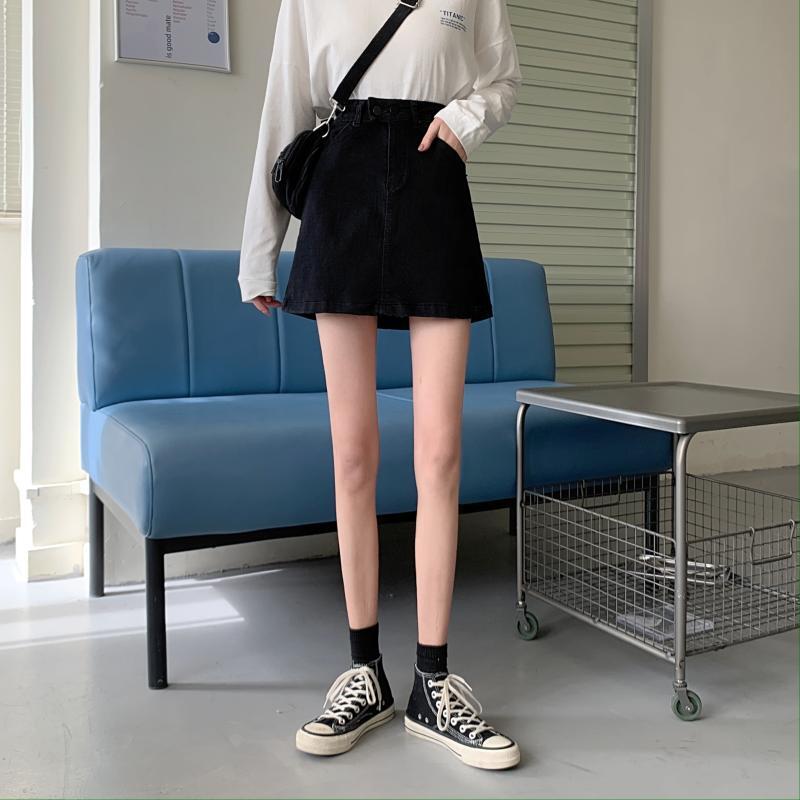 ブラックスカート ハイウェストウェストAラインショートスプリング 春物 ウエスト Marchs65707992529