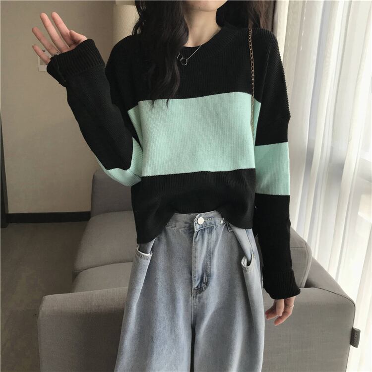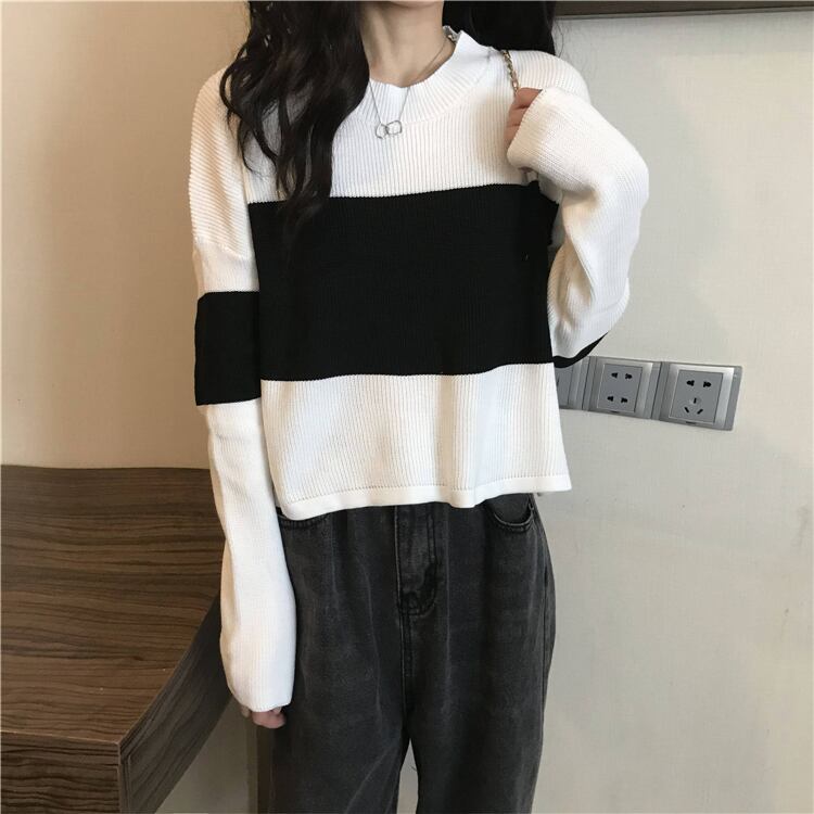 スプリングショートニットトップス セーター ルーズTシャツ ロング 春物 長袖 Marchs48540265266