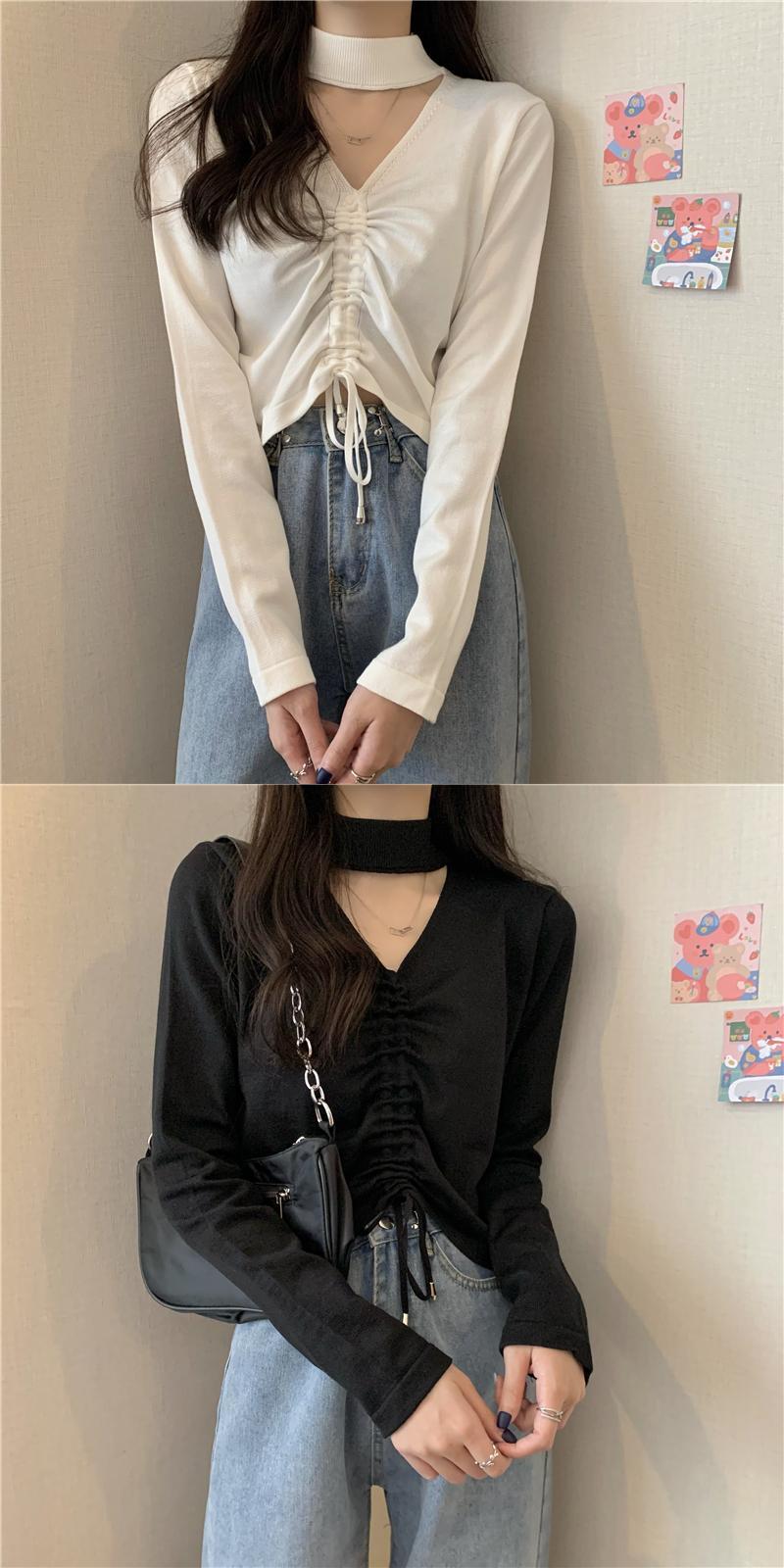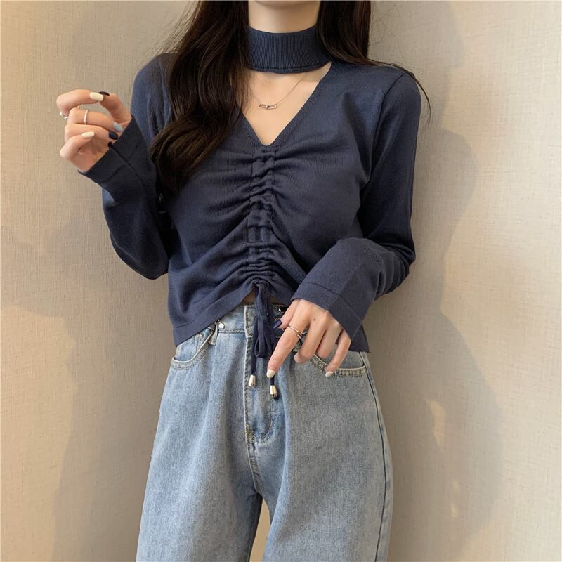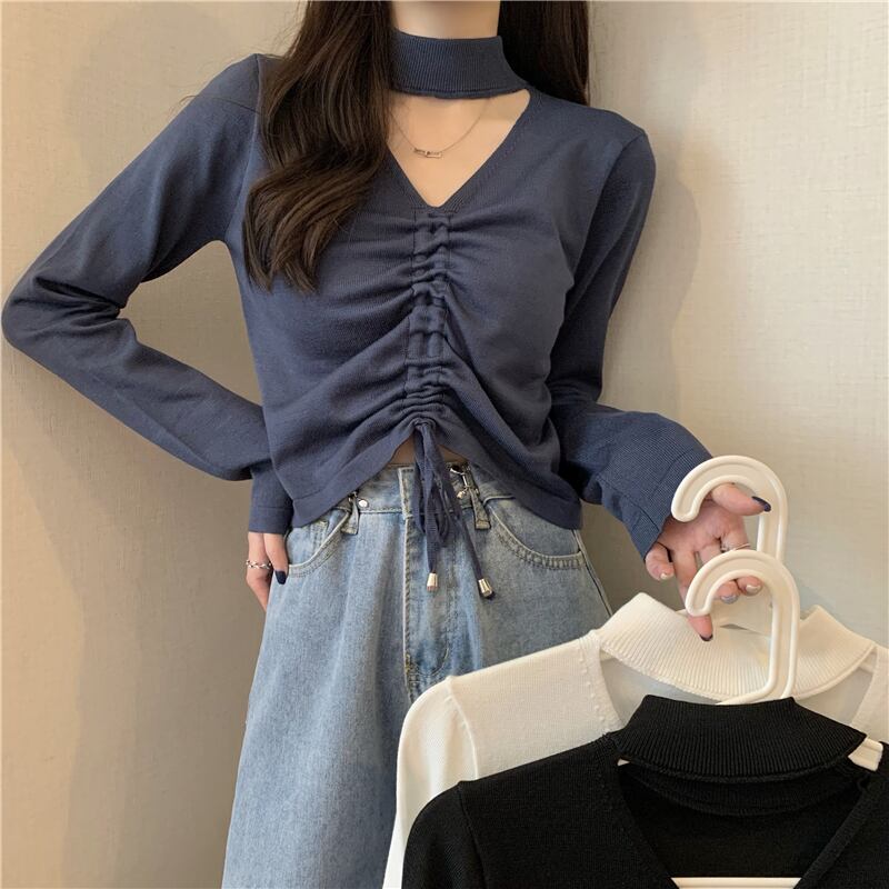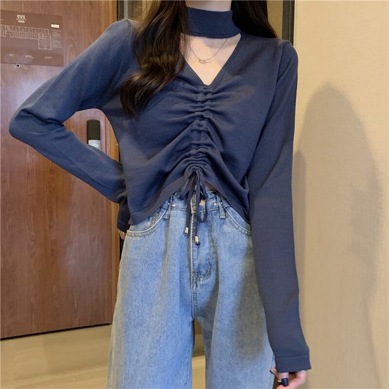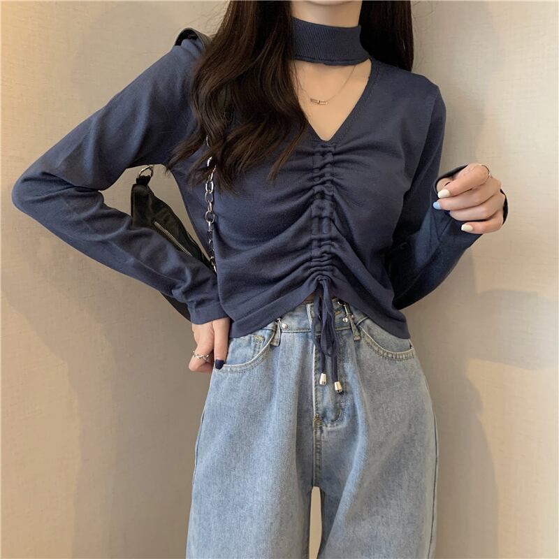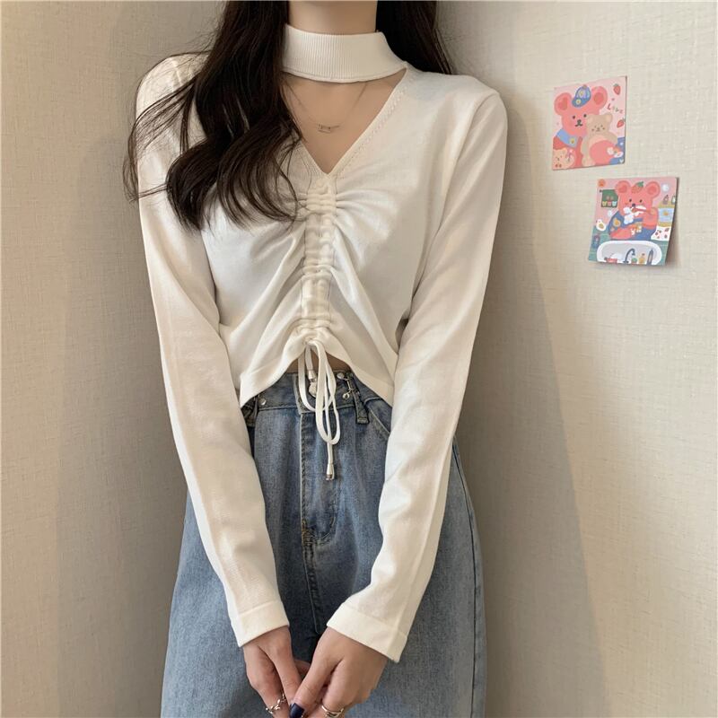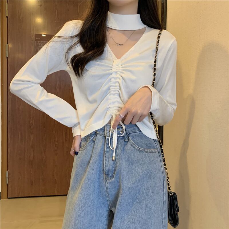 シャツ スプリングホルターギャザーショートゆったりニットトップス ロング 春物 Tシャツ 長袖 Marchs64250701172