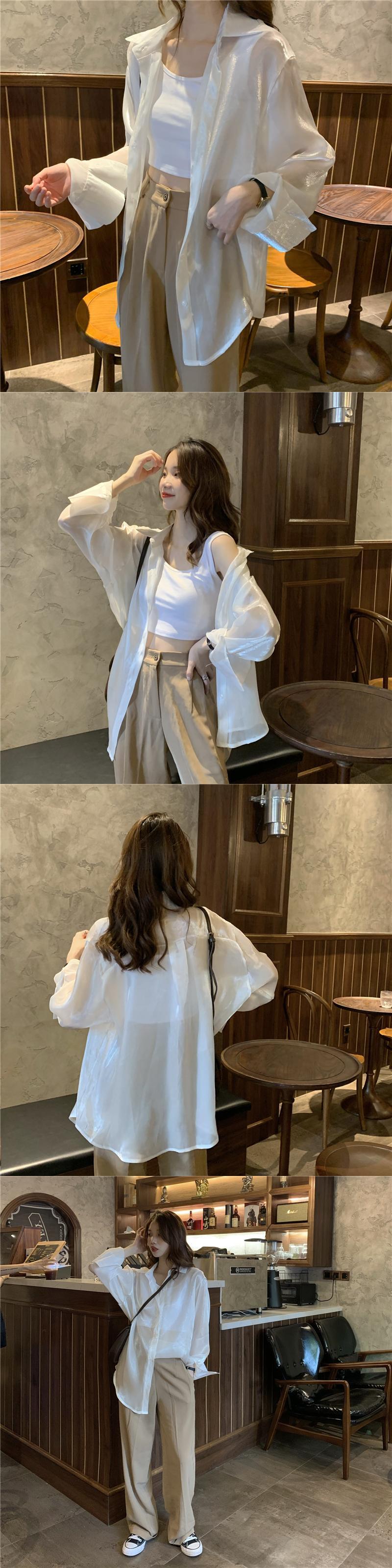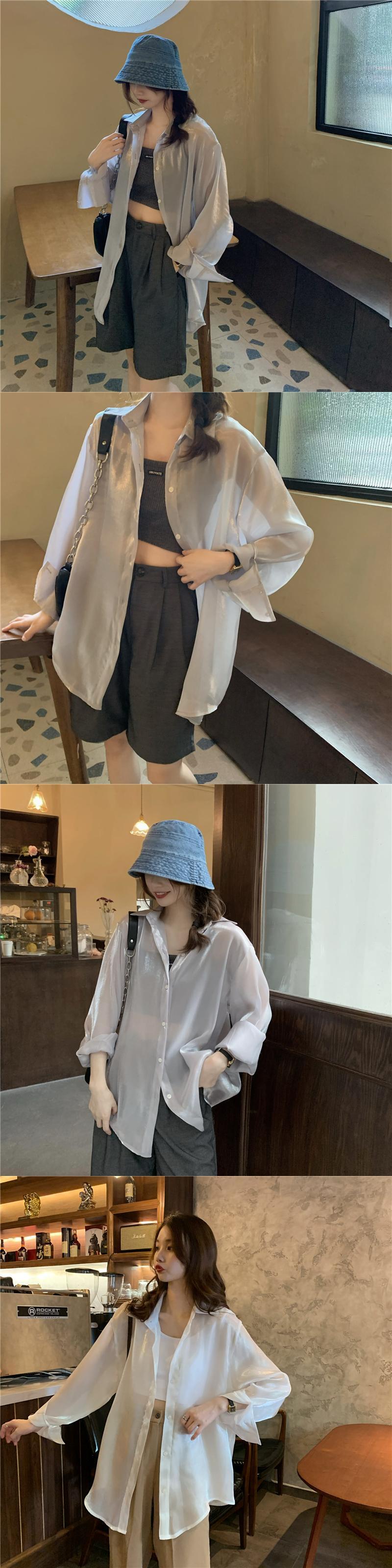 シャツ 夏服薄手韓国ファッションスタイルルーズジャケット ロング 夏物 長袖 Marchs5287806364