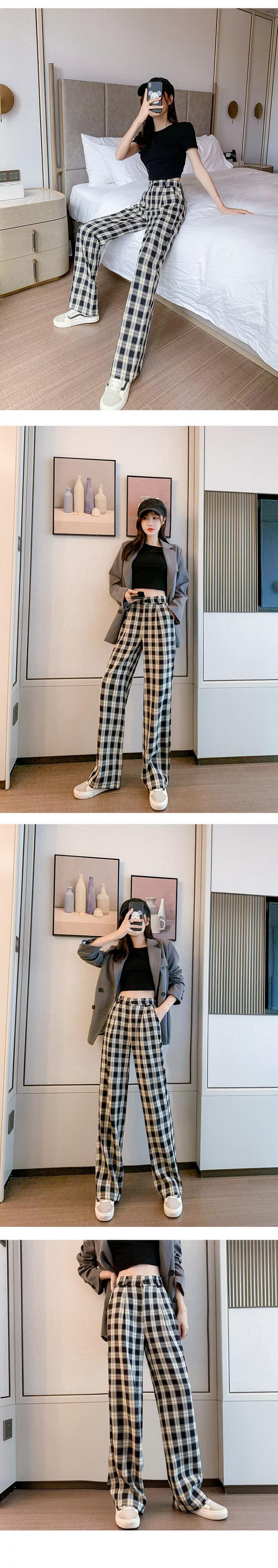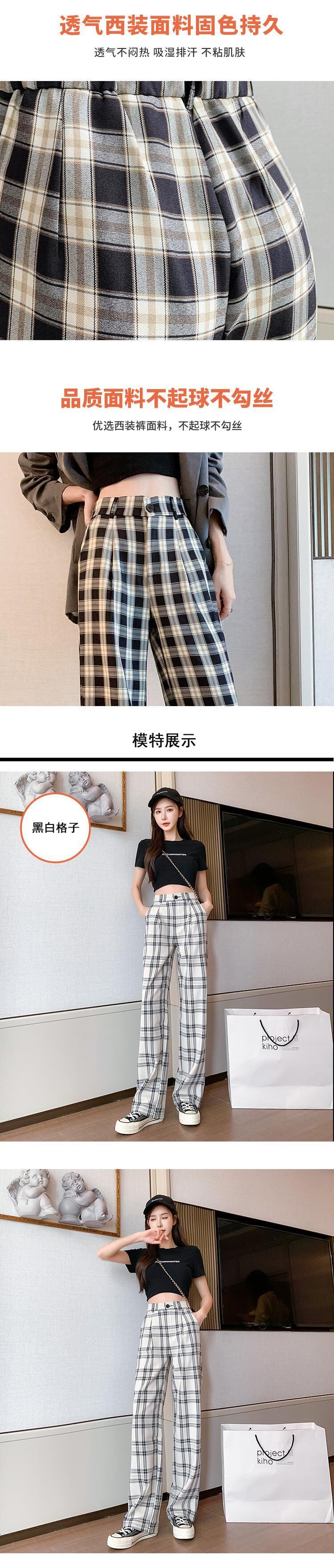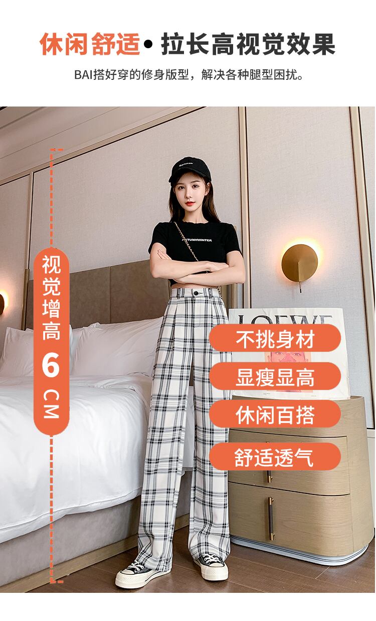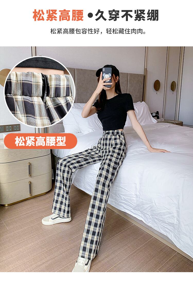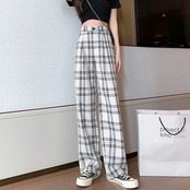 格子柄パンツ 夏服薄手ルーズブラックホワイトハイウェストウェスト 夏物 ウエスト Marchs74002104634