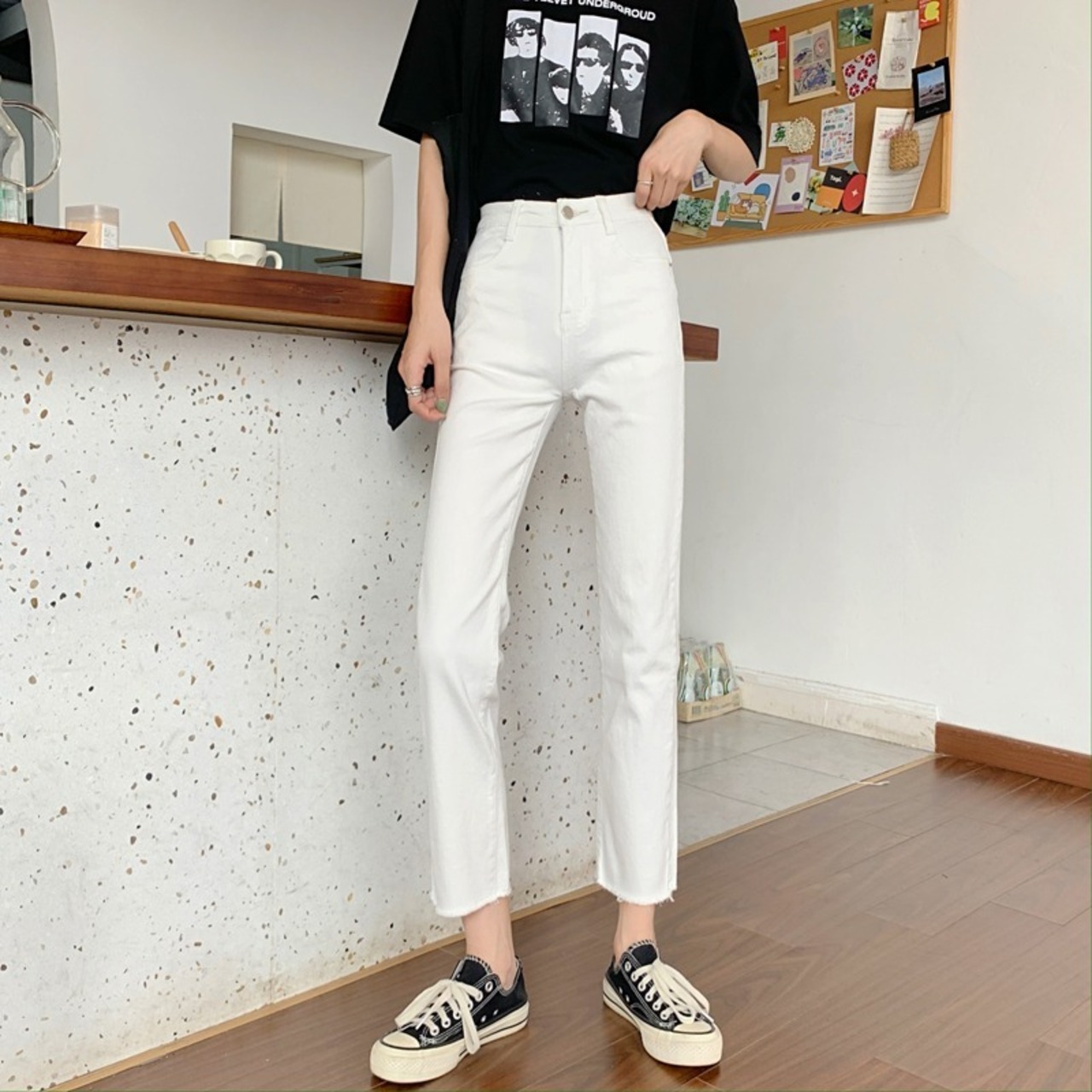 ホワイトジーンズ ルーズパンツ スプリング韓国ファッション薄手 春物 スタイル Marchs35345759747