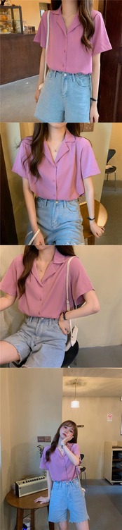 シャツ レディーススタイルカラーシフォンスタンダードルーズトップス レトロ Marchs80525738136
