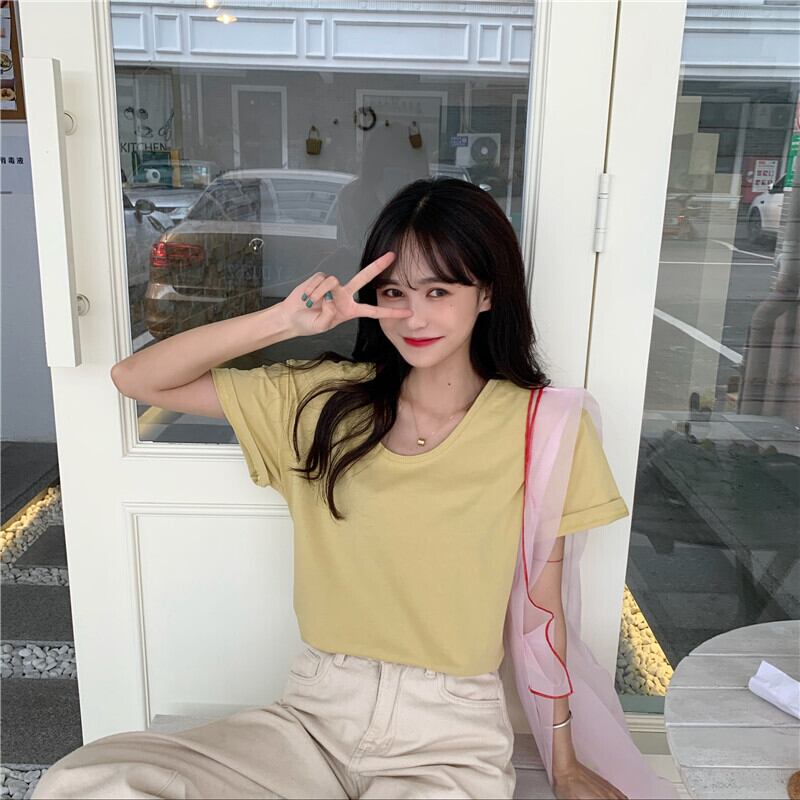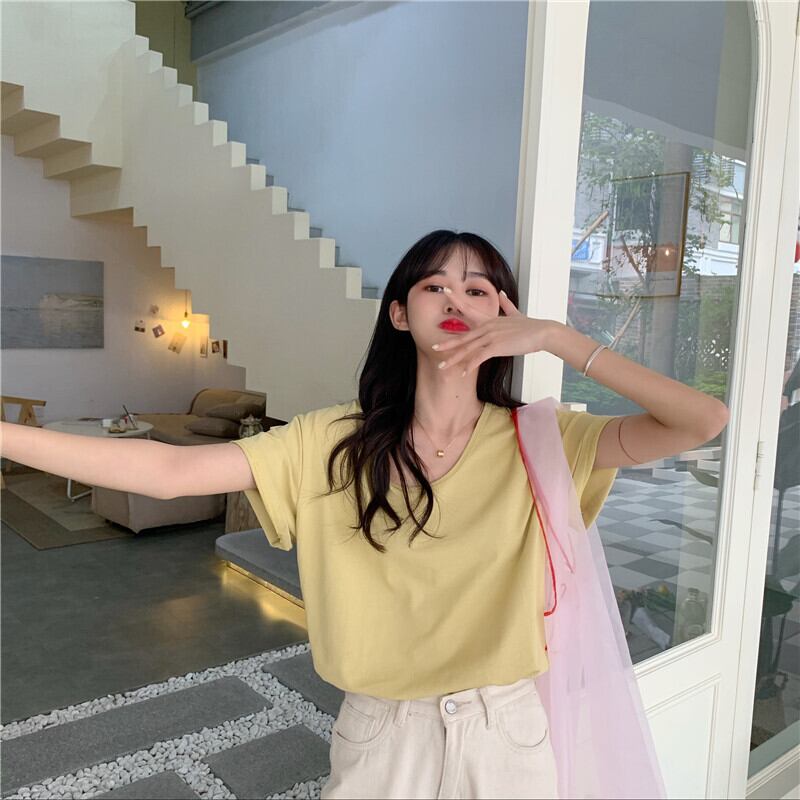 イエローTシャツ夏服ルーズオレンジトップス ジーンズ コットン 夏物 ピュア Marchs60139376321