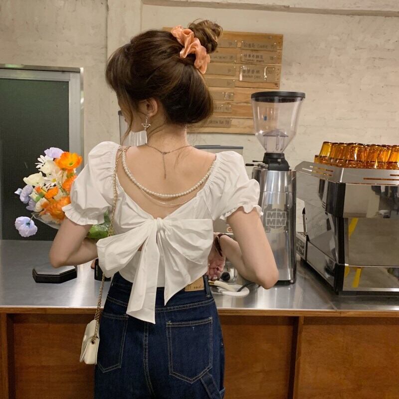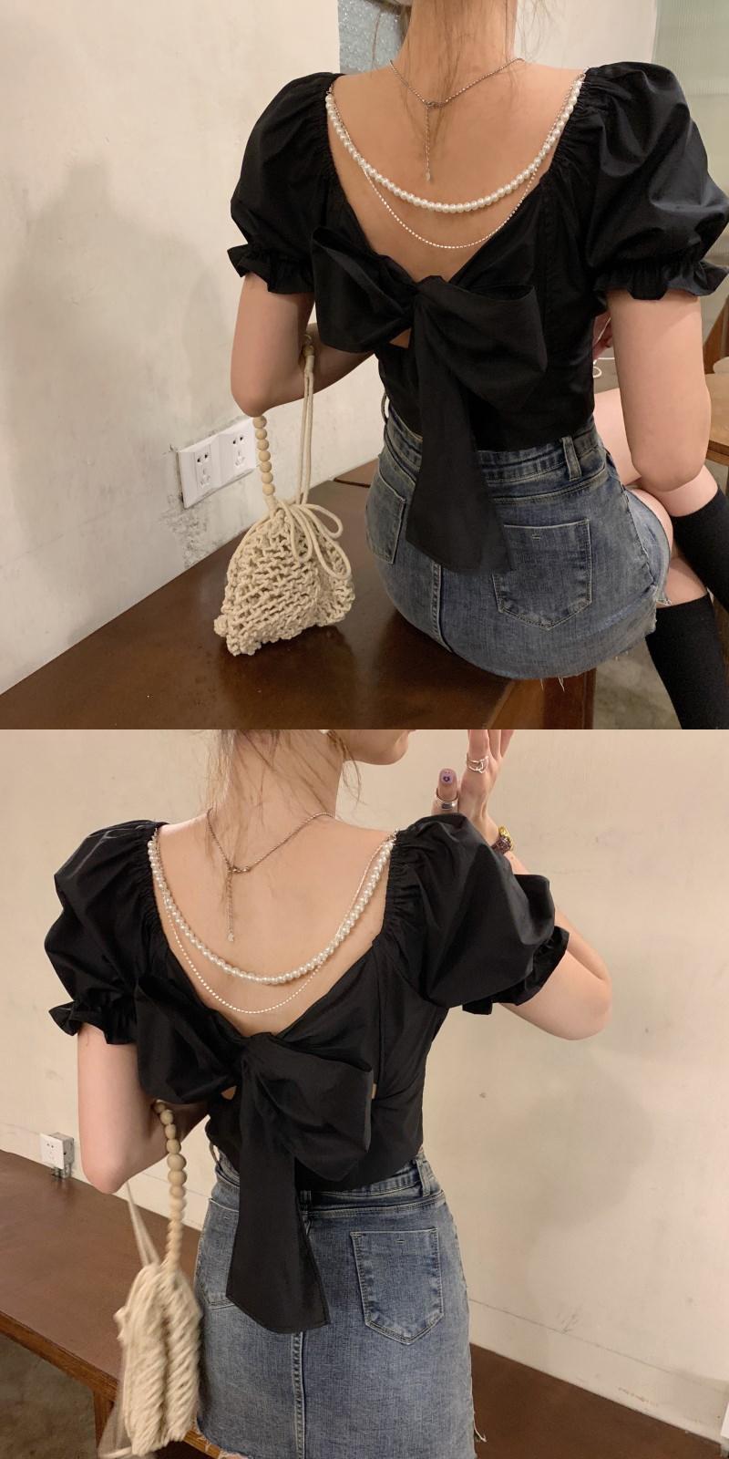 ブラウス 夏服パールリボンショートシャツ スリーブ半袖 ハーフスリーブ 大人ガーリー スウィート キュート カジュアル 夏物 真珠 Marchs70832832416
