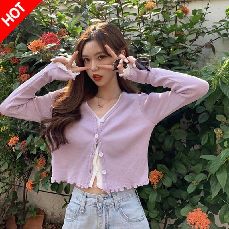 スプリング秋物トップス 薄手ショートニットカーディガンツーピースVネックジャケット レディース 春物 オータム Marchs30572064619