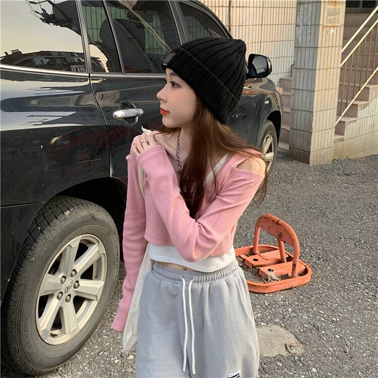 ソリッド カラーTシャツシャツ レディース韓国ファッション夏服ショートトップス ハイウェストパンツ ゆったり ロング 夏物 ソリッドカラー スタイル 長袖 ウエスト Marchs6764219988