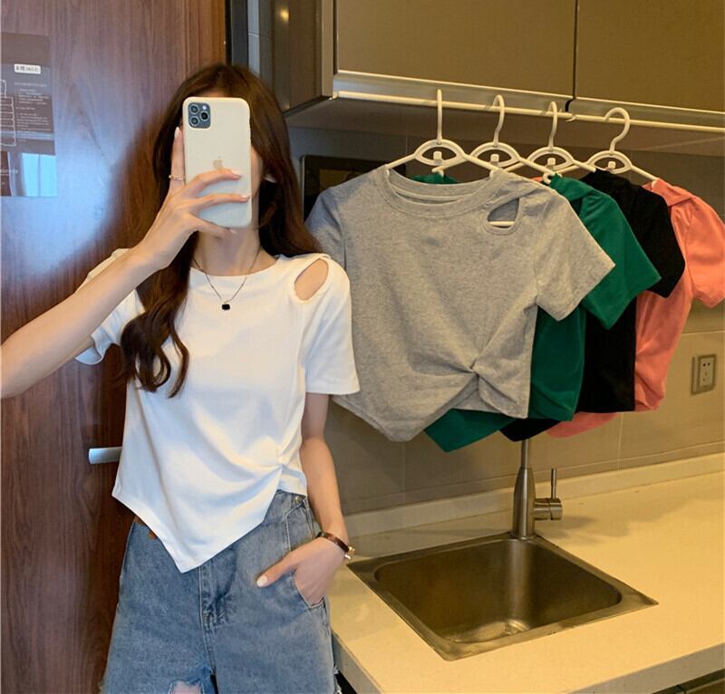 ショートブラウス レディース夏服スリムグリーンTシャツ 夏物 Marchs16795945229