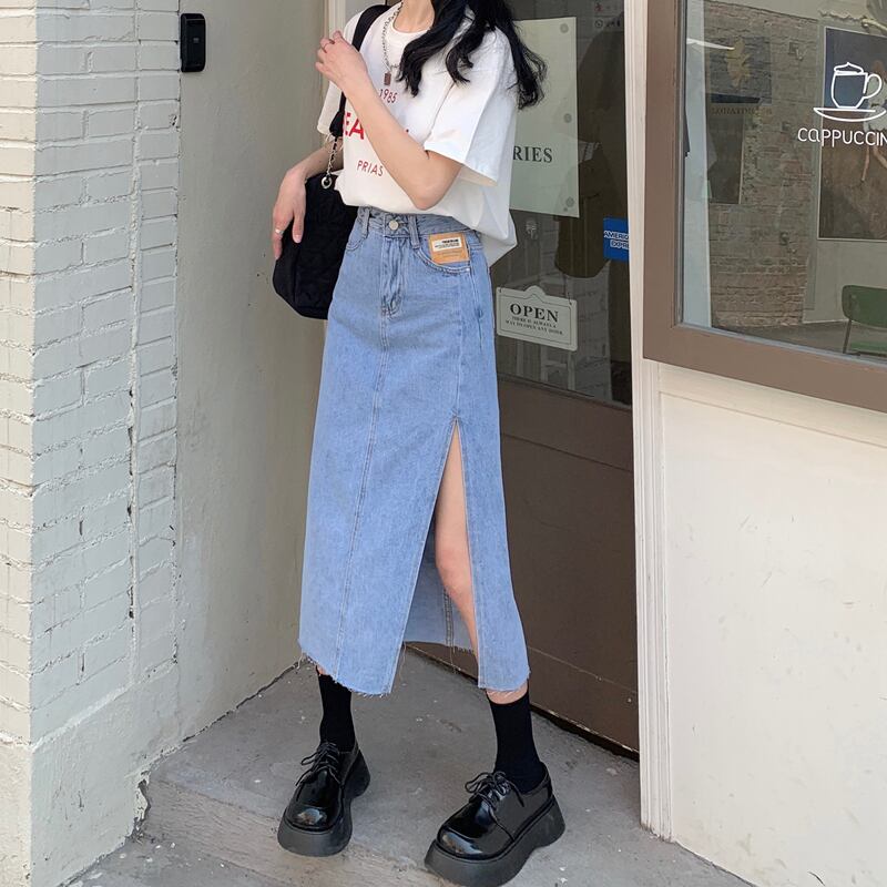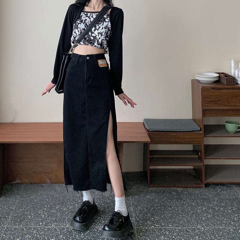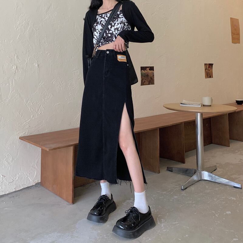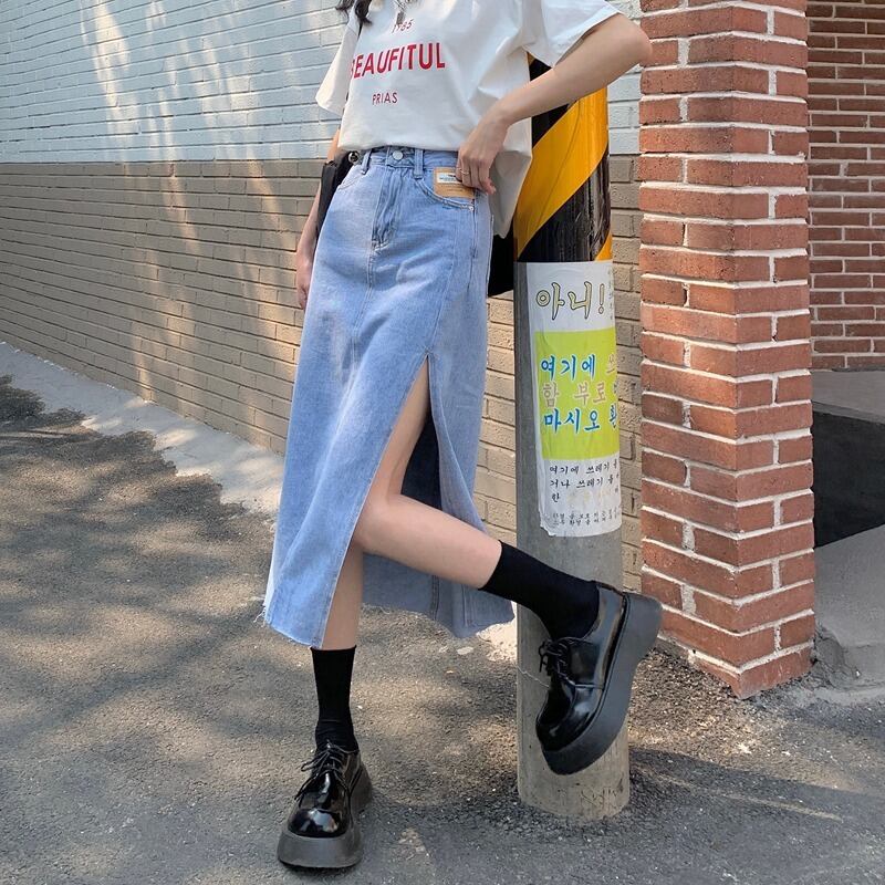 ウェストサイドスリットスカート 夏服薄手Aライントレンド 夏物 ウエスト ミドル丈 Marchs38063974726