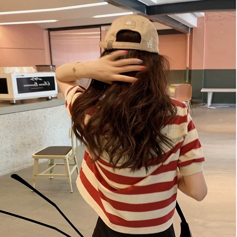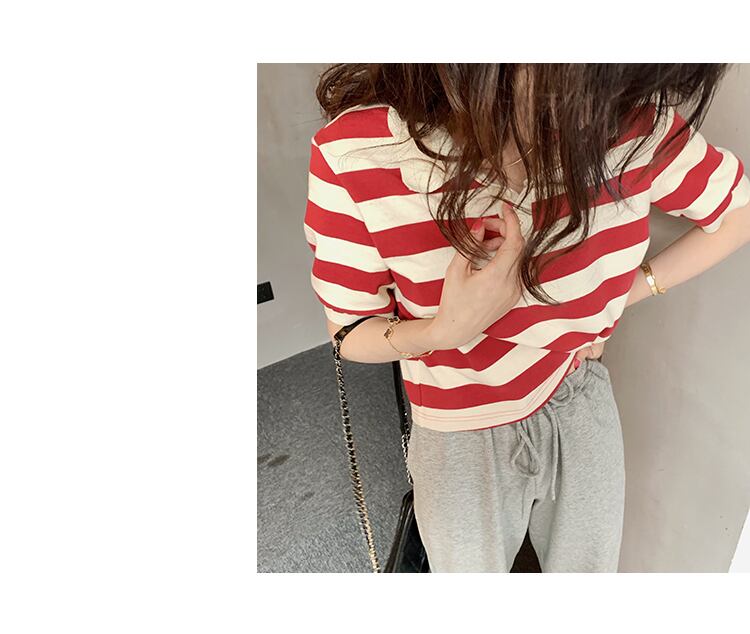 ストライプ夏服スタンダードトップス ルーズTシャツ レトロ 夏物 Marchs29450606658