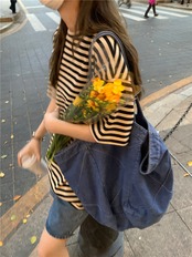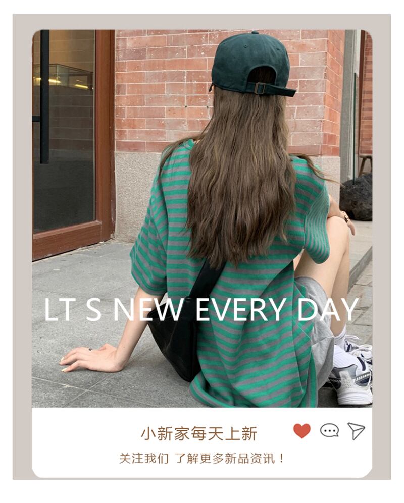 ブラックホワイトストライプTシャツレディース夏服トレンド韓国ファッションルーズカジュアルトップス 夏物 スタイル ミドル丈 Marchs30808341540