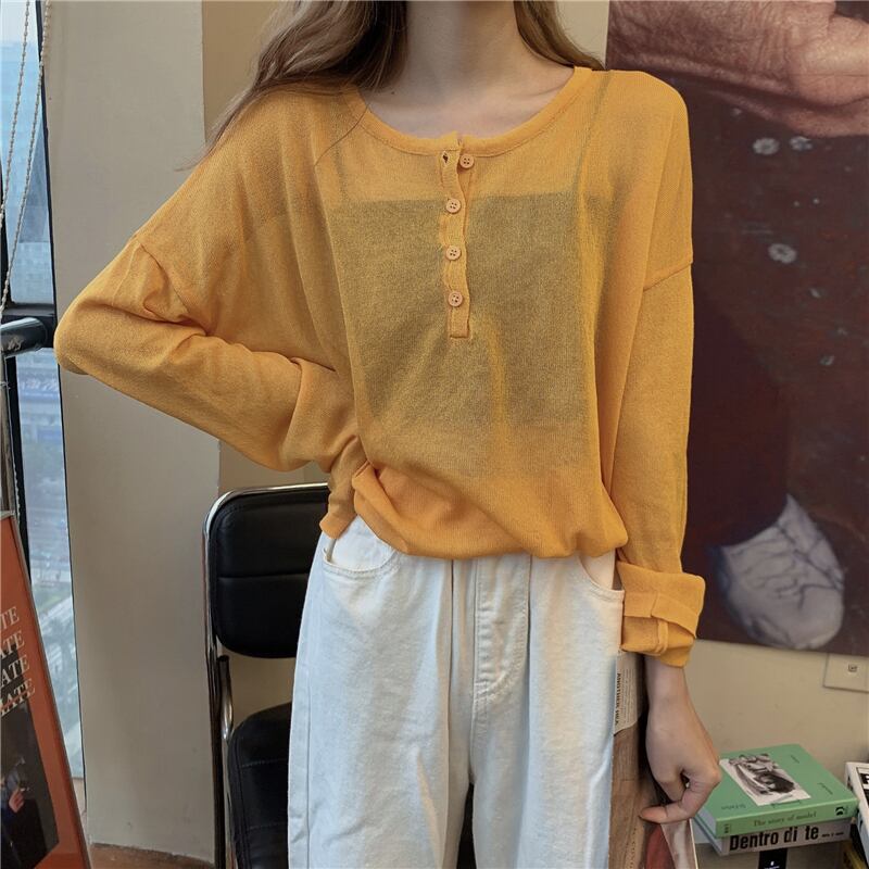 薄手ニットブラウス 韓国ファッションシャツ レディースルーズ夏服プルオーバー トップス ロング 夏物 シルク 長袖 Marchs2820526152