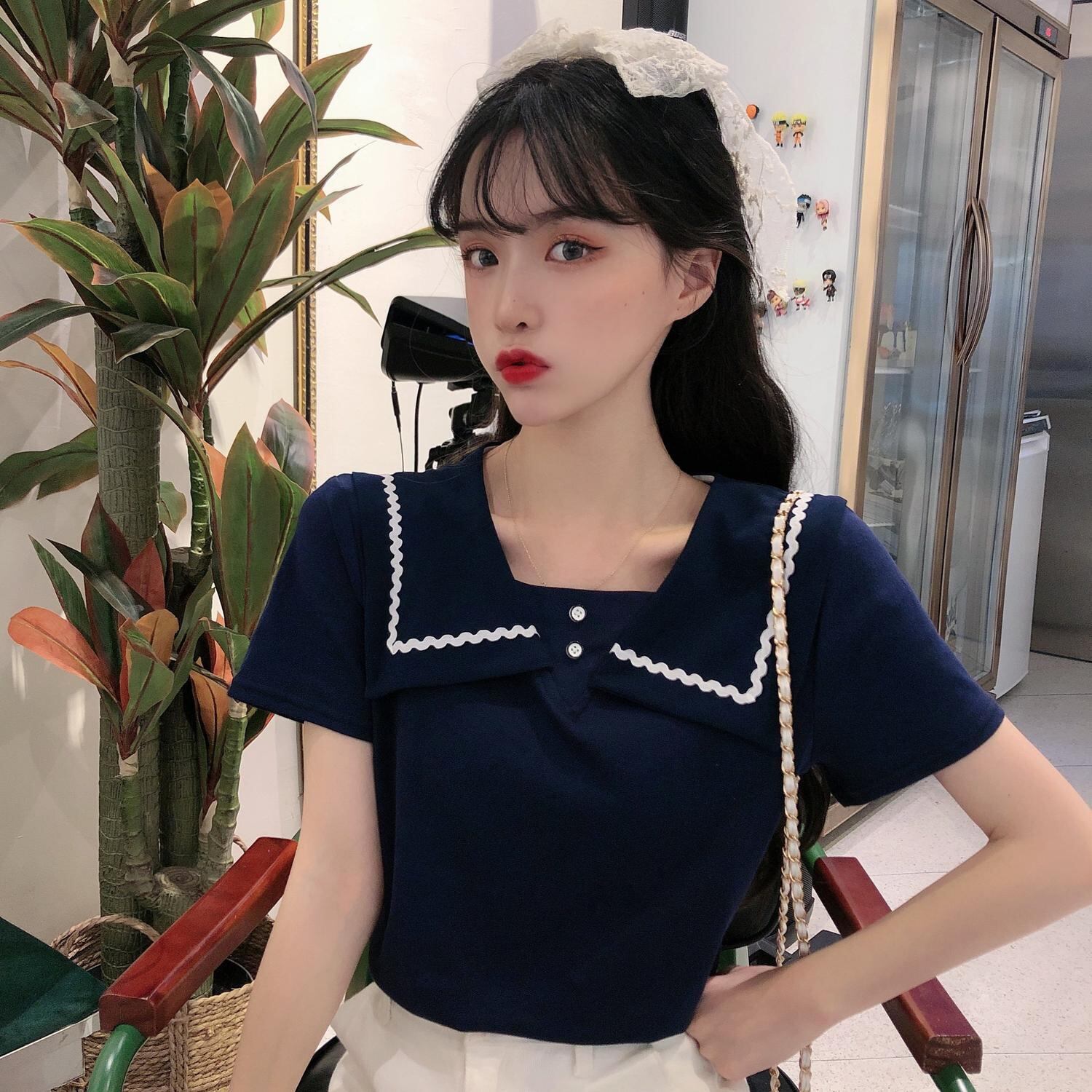 セーター レディース夏服スタイル薄手Tシャツネイビーカラーブラウス 夏物 シルク Marchs70145845199