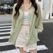 薄手シャツ 夏服ルーズホワイト 夏物 ミドル丈 Marchs32862738762