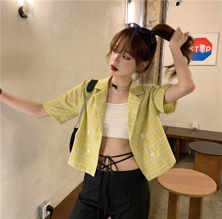 格子柄ジャケット 夏服ルーズ薄手ショート半袖スリーブトップス ハーフスリーブ ストリート 夏物 Marchs65879337108