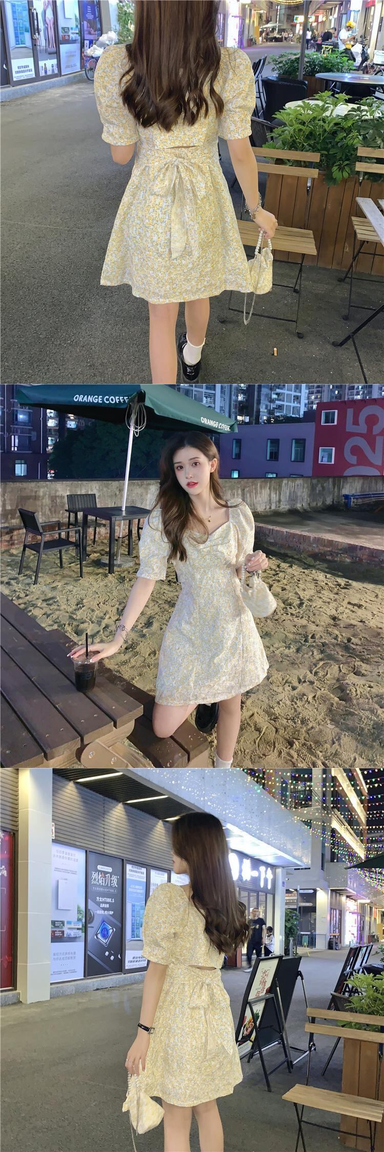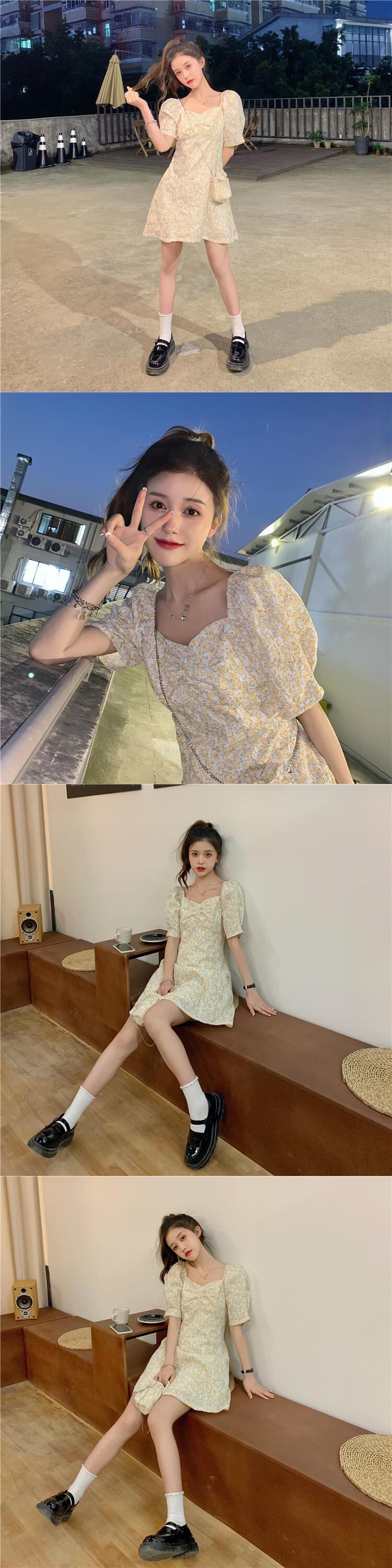 スタンダードワンピースフローラルスカート レトロ ストリート 花柄 スクウェア Marchs81302320818