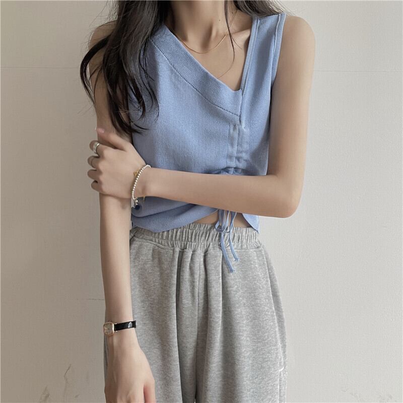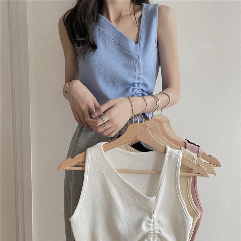 ホワイト夏服ギャザープリーツニットトップス 夏物 Marchs25375450133