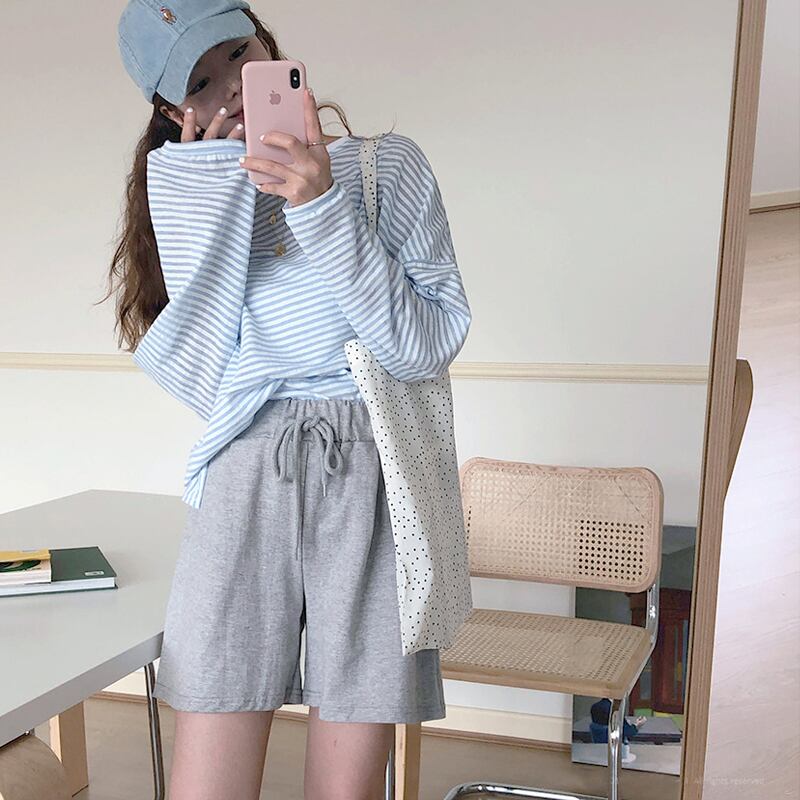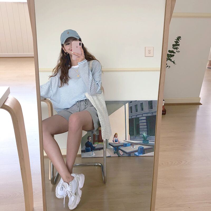 夏服韓国ファッションルーズカジュアルストライプTシャツトップス レディース ロング 夏物 スタイル 長袖 Marchs86336553064