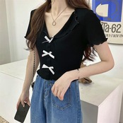 スタイルセーター トップス 夏服ショートTシャツレディース ピンク リボン 大人ガーリー スウィート キュート カジュアル 夏物 Marchs22191428270