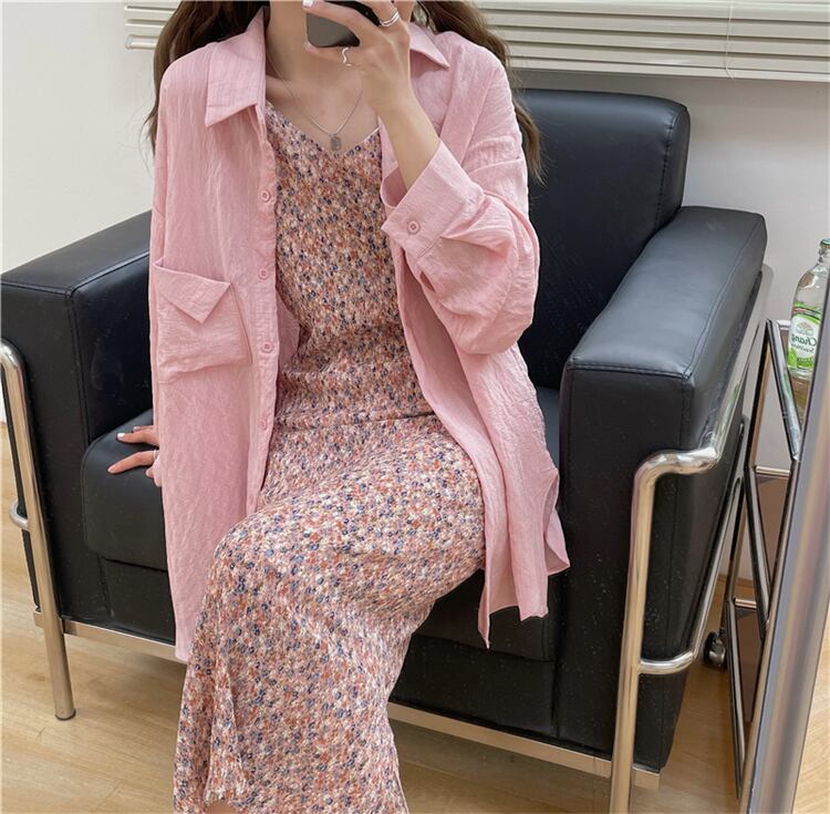 薄手レディース夏服ルーズショールシャツ ジャケット スカート 夏物 ミドル丈 Marchs51953522313
