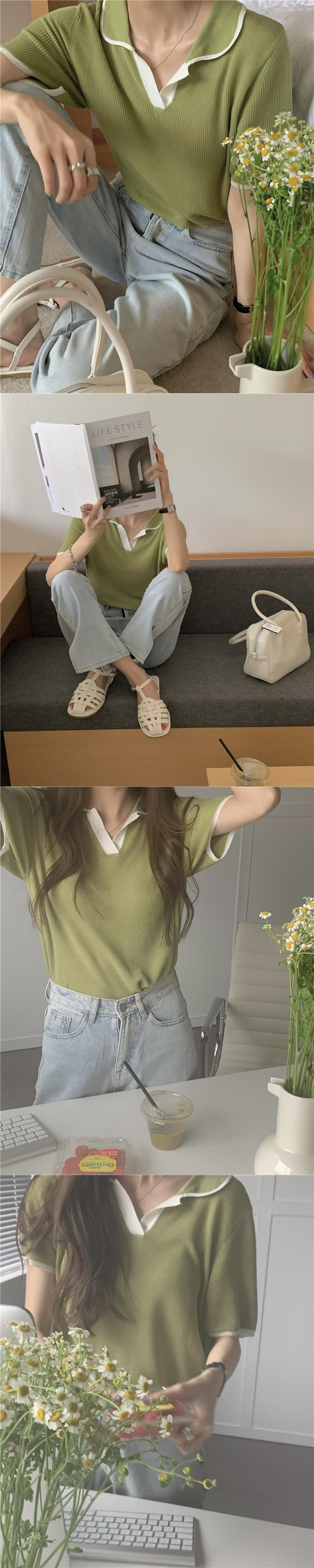韓国ファッションスタンダードスタイルカラーVネック薄手シャツ ニットTシャツトップス レディース夏服 レトロ 夏物 シルク Marchs19556707957