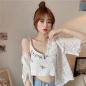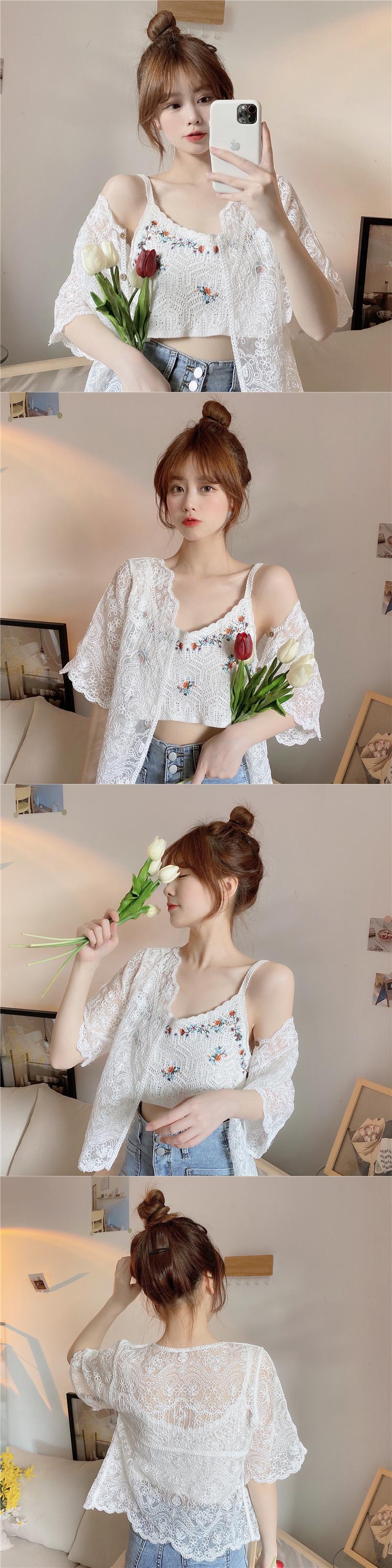 薄手レディース夏服レースカーディガンブラウス ショール レッド 刺繍 夏物 Marchs28399322370