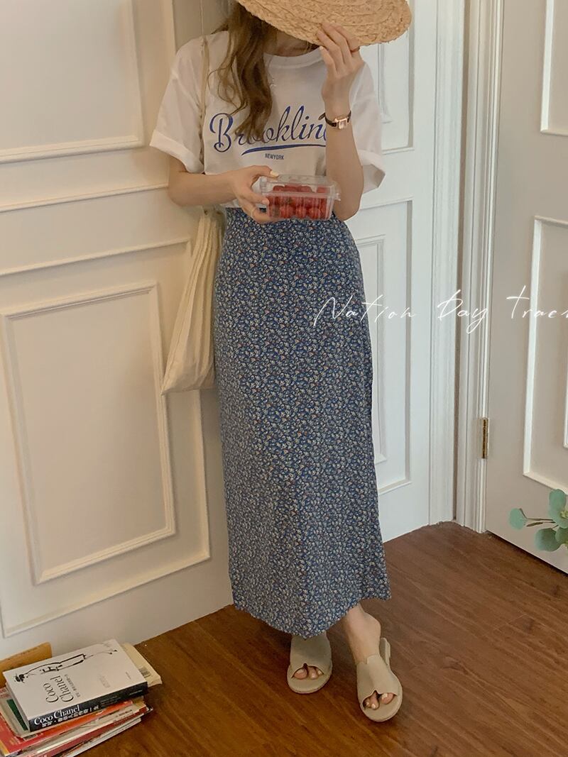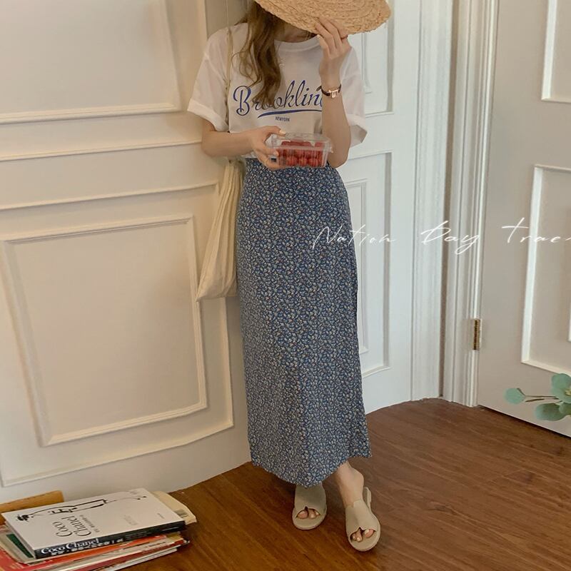 フローラルシフォンスカート 夏服薄手レディースハイウェストウェストルーズAラインスタンダードロング レトロ 夏物 花柄 ウエスト ミドル丈 Marchs50536982806