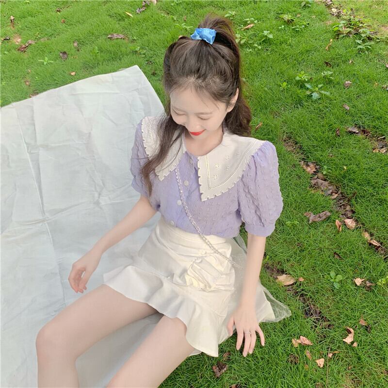 夏服レディースブラウス カラーシャツ ワンピース 大人ガーリー スウィート キュート カジュアル 夏物 パープル Marchs90032554653