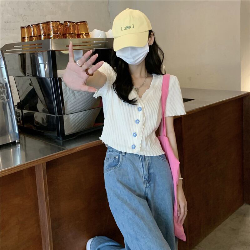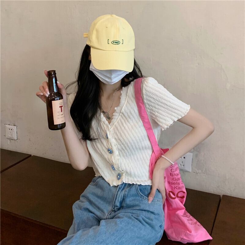 夏服スタイルVネックニット薄手ショートTシャツトップス カーディガン 大人ガーリー スウィート キュート カジュアル 夏物 シルク Marchs65124533608