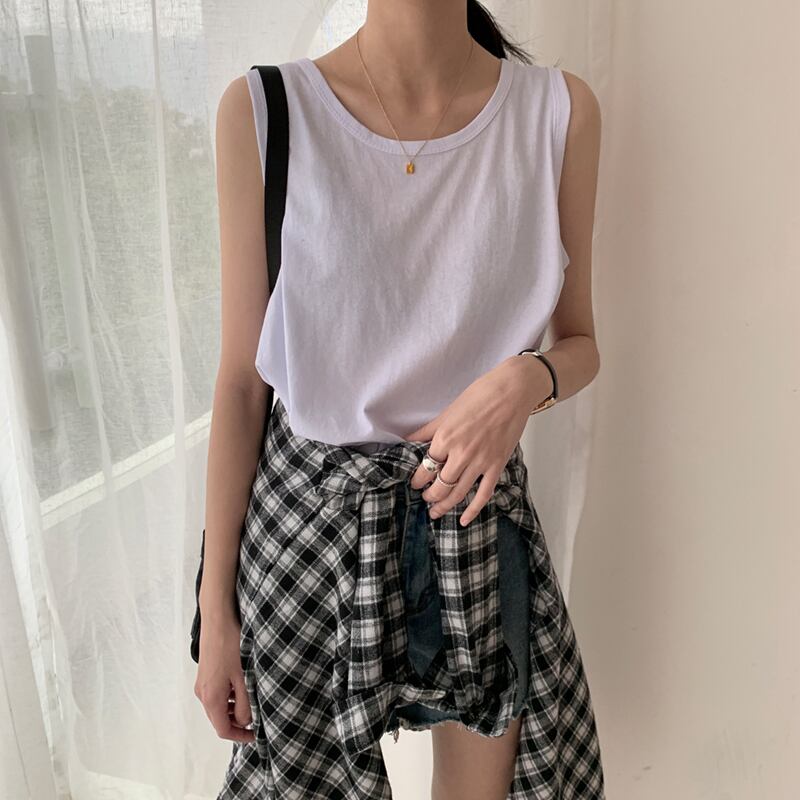 ホワイトレディーススプリング夏服ノースリーブゆったりTシャツトップス トレンド コットン 春物 夏物 ピュア Marchs35553410338