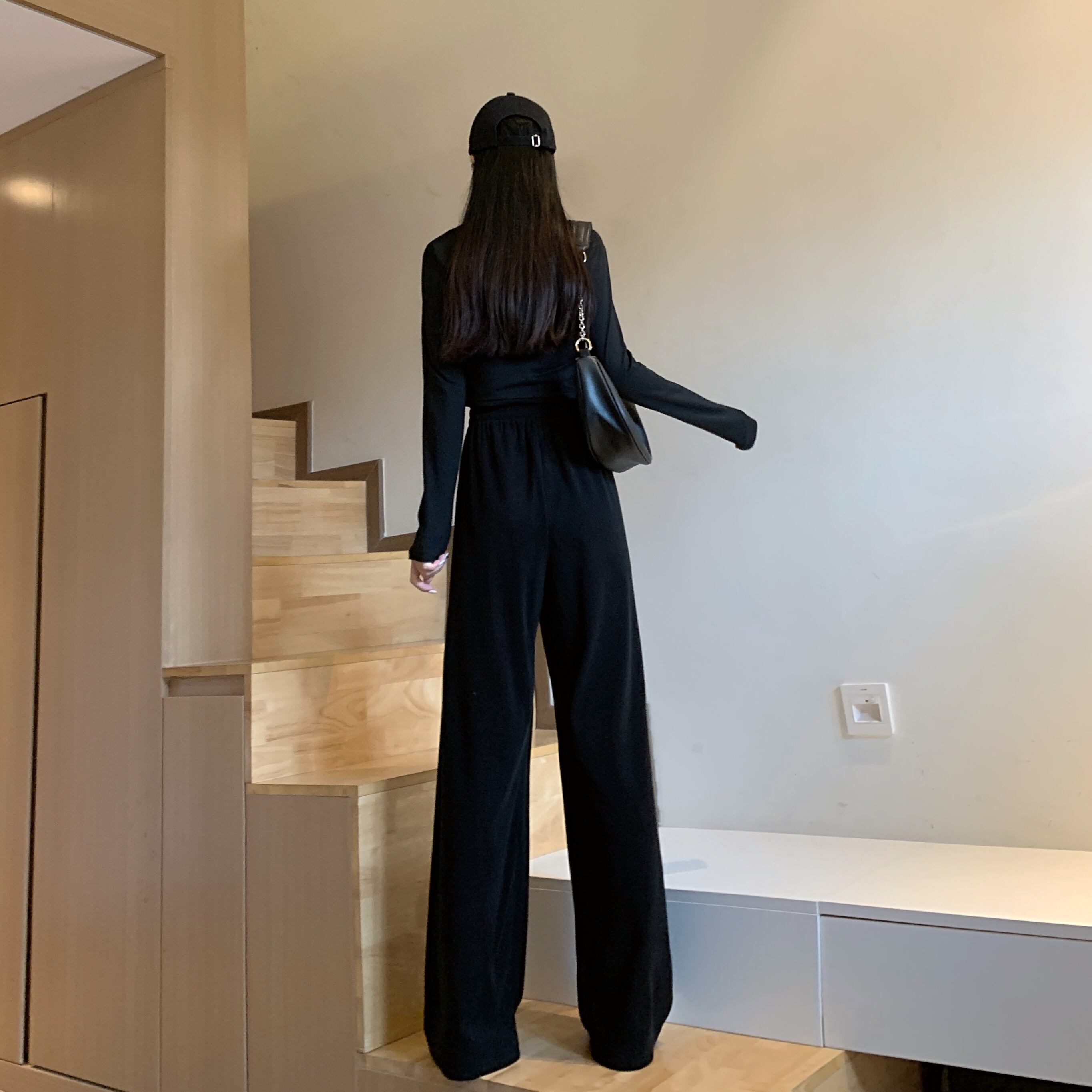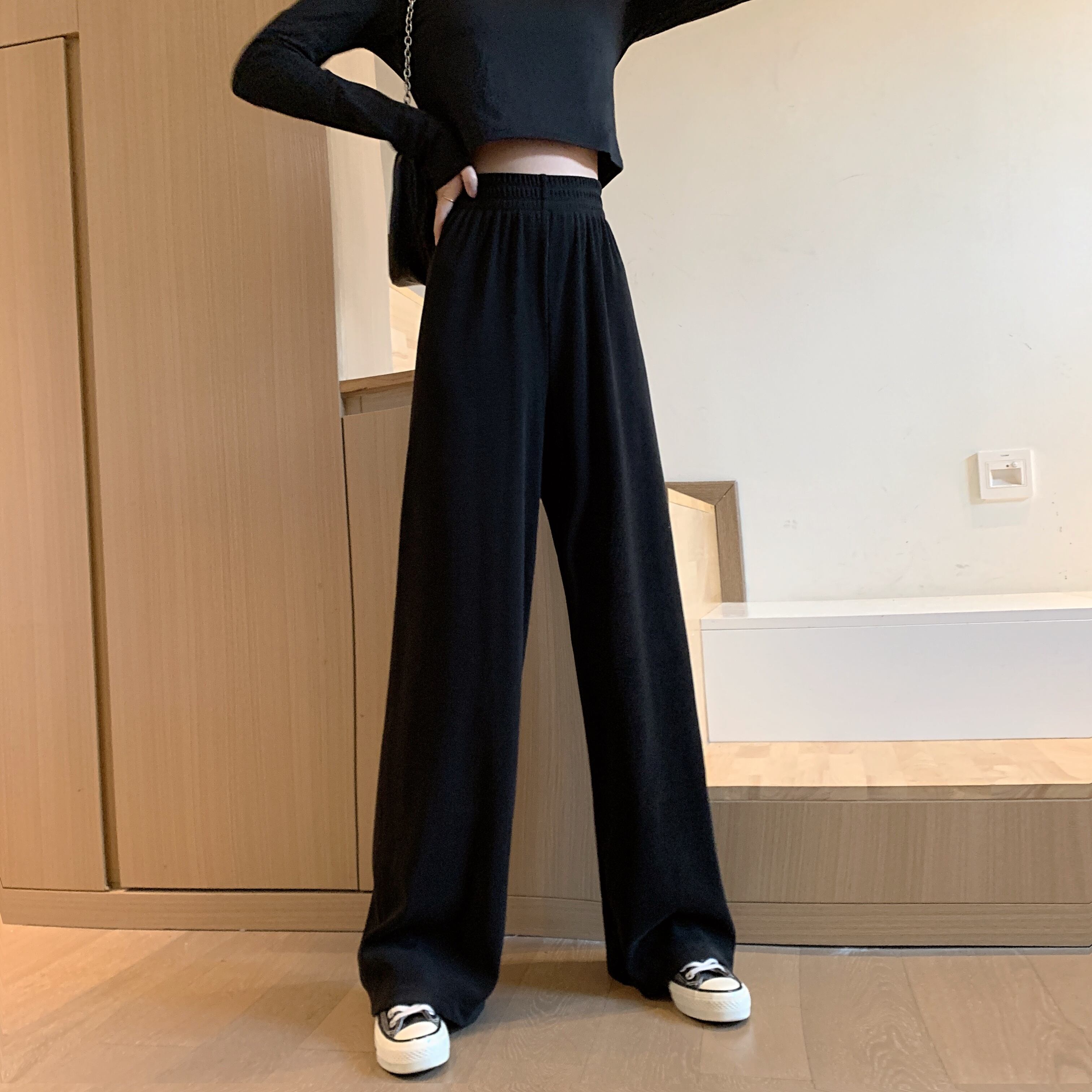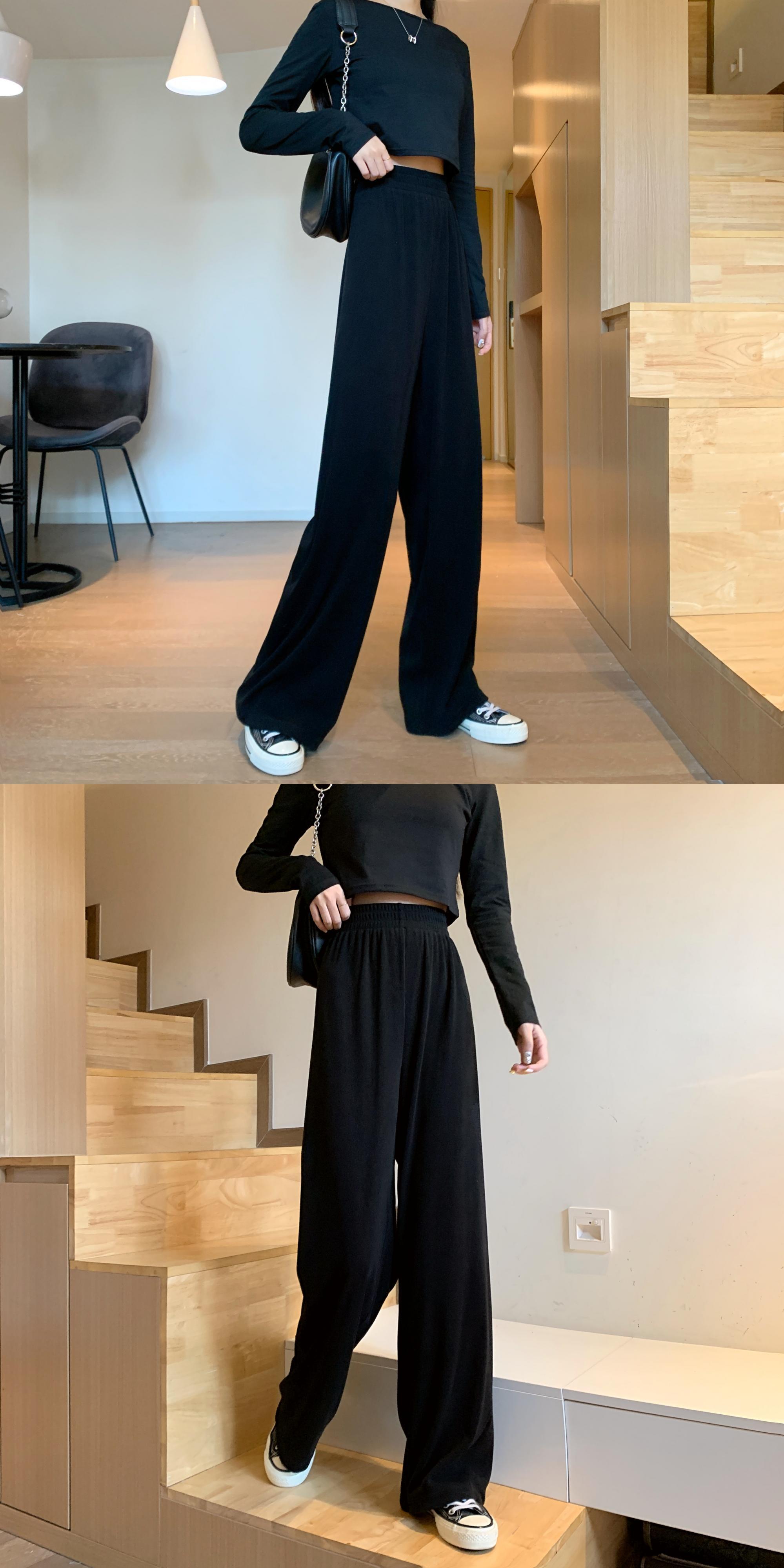 ワイドレッグパンツ レディースハイウェストウェストブラックルーズ夏服ストレッチモダン エラスティック 伸縮 夏物 ワイドパンツ シルク ウエスト Marchs96038712507