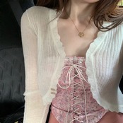 夏服スタイルショールカーディガン薄手ショートレースニットトップス 夏物 シルク Marchs35624679942