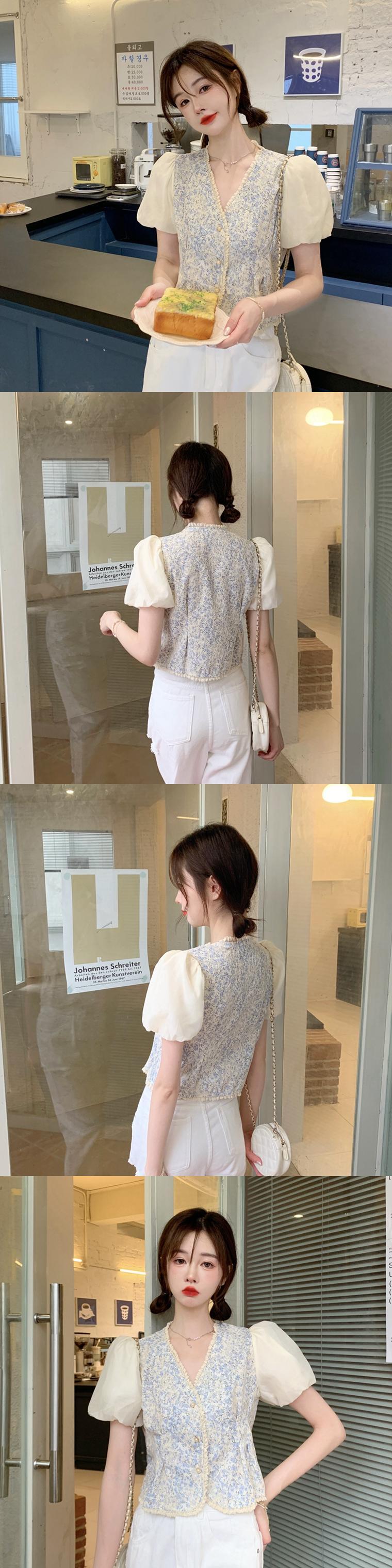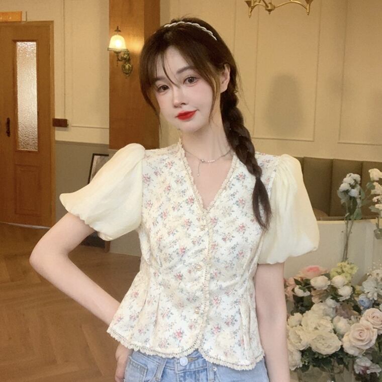 ブラウス ショートフローラルシャツ レディーススタンダードVネックスリーブFlowerデザイン レトロ 半袖 ハーフスリーブ 花柄 フラワーデザイン Marchs24170515898